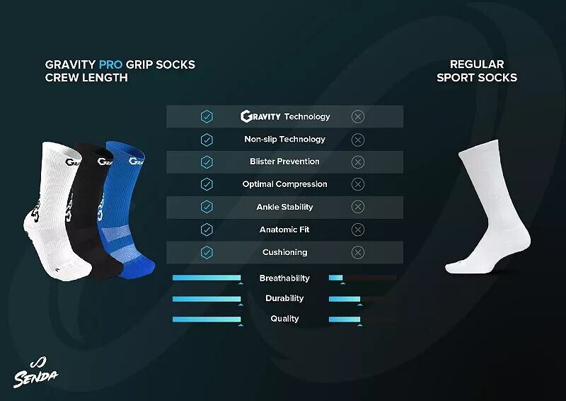 • Эти носки изготовлены из легких материалов и обеспечивают необходимую компрессию для более быстрого восстановления кровотока после тяжелых тренировок и игр.