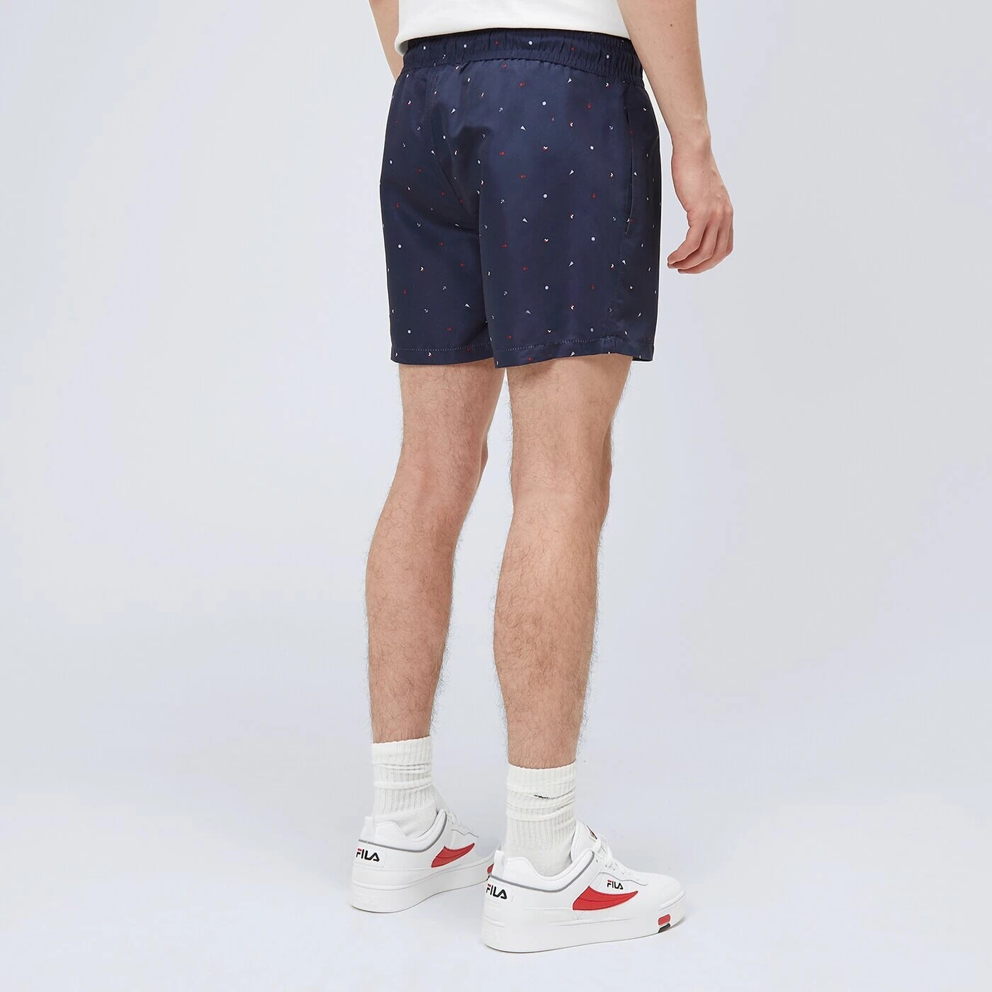 Пришло время праздников! Дополните свой гардероб легкими шортами, которые пригодятся во время отпускных поездок. Бренд Fila предлагает модель Benny. Темно-синий цвет украшен тонким узором в морской атмосфере. Верх шорт оснащен эластичной талией и шнурком для надежной фиксации и правильной посадки. Вся вещь изготовлена из легкого трикотажа - идеально подходит для теплых дней!