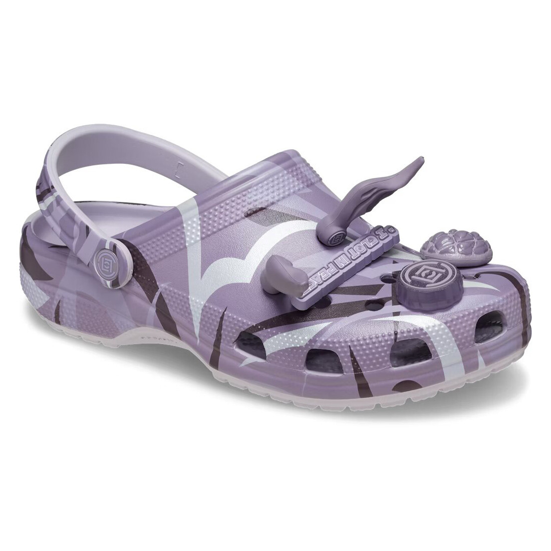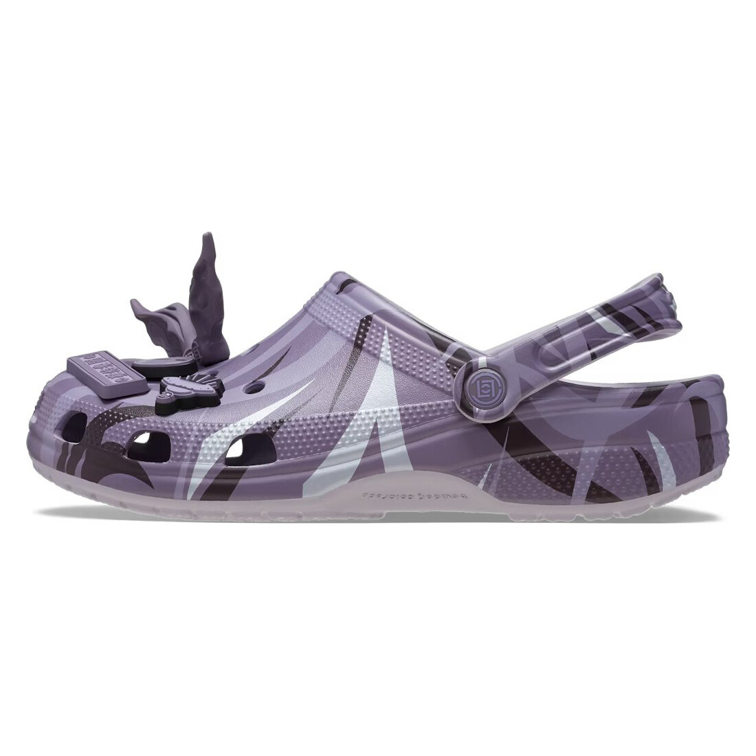 Сочетая влияние Востока и Запада, классический силуэт кроксов покрыт культовым принтом CLOT Alienegra Camo со светоотражающими мазками. Эксклюзивные Jibbitz украшены потусторонними символами, такими как остроконечные уши инопланетян и НЛО, в то время как другие символы немного ближе к дому, например, сладкая булочка с ананасом.