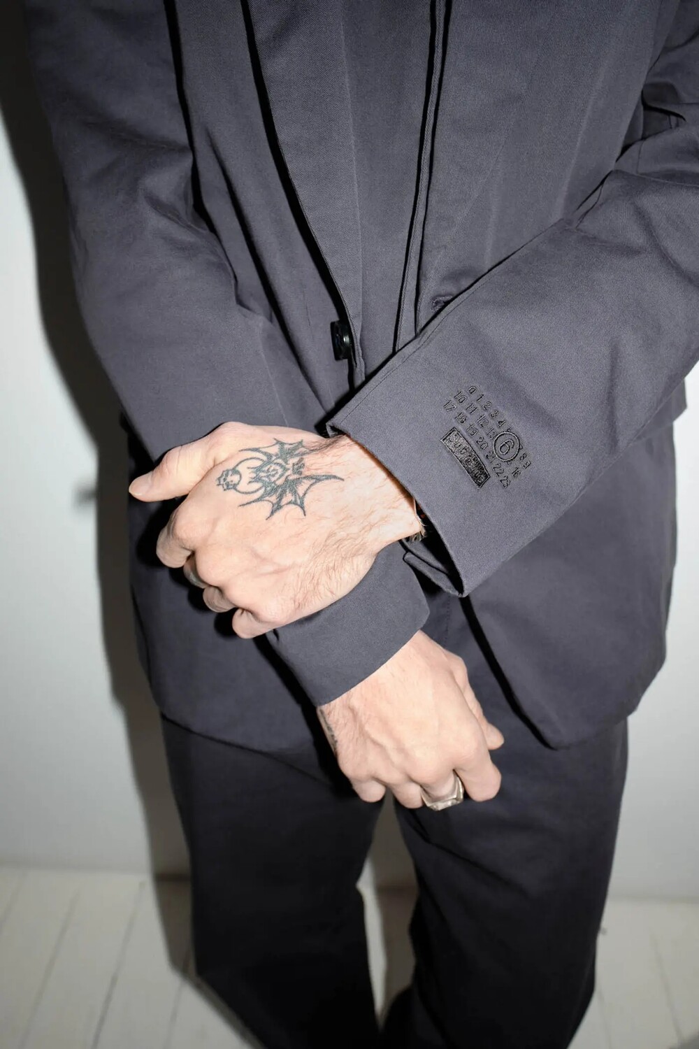 Стираный хлопок с полуподкладкой из вискозной смеси. Пиджак с двойными накладными карманами на бедрах, нагрудным карманом и внутренним нагрудным карманом. Шалевый лацкан с функциональными пуговицами и вентиляционным отверстием на заднем шве. Вышитый логотип и цифровая подпись MM6 на манжете. Полуприталенные брюки с ширинкой на молнии и застежкой на крючок. Косые передние карманы и задние накладные карманы с застежкой на пуговицы. Вышитый логотип и цифровая подпись MM6 на заднем кармане. Ткань изготовлена в Италии.