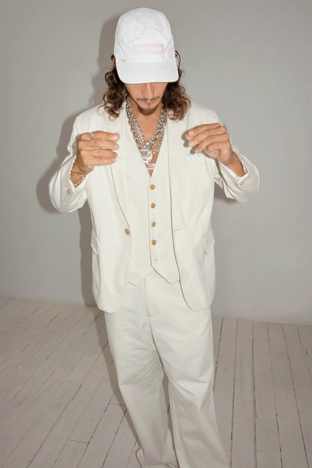 Supreme совместно с MM6 Maison Margiela создал новую коллекцию для весны 2024 года. Хотя MM6 Maison Margiela и Supreme - два лейбла с противоположных сторон модной монеты, они имеют объединяющую их черту: переворачивать обыденное, чтобы создать нечто уникальное. С момента своего появления в 1990-х годах оба бренда раз за разом переосмысливали свои категории одежды для скейтбордистов и одежды класса люкс. В коллекцию вошли шуба из искусственного меха, куртка Varsity, рабочая куртка, костюм и жилет из выстиранного хлопка, рубашка, две футболки S/S, две толстовки с капюшоном, брюки Painter, шорты, кепка Camp Cap, майки Hanes и носки Crew Socks, парик, кошелек, цепь Kryptonite + дисковый замок и скейтборд.