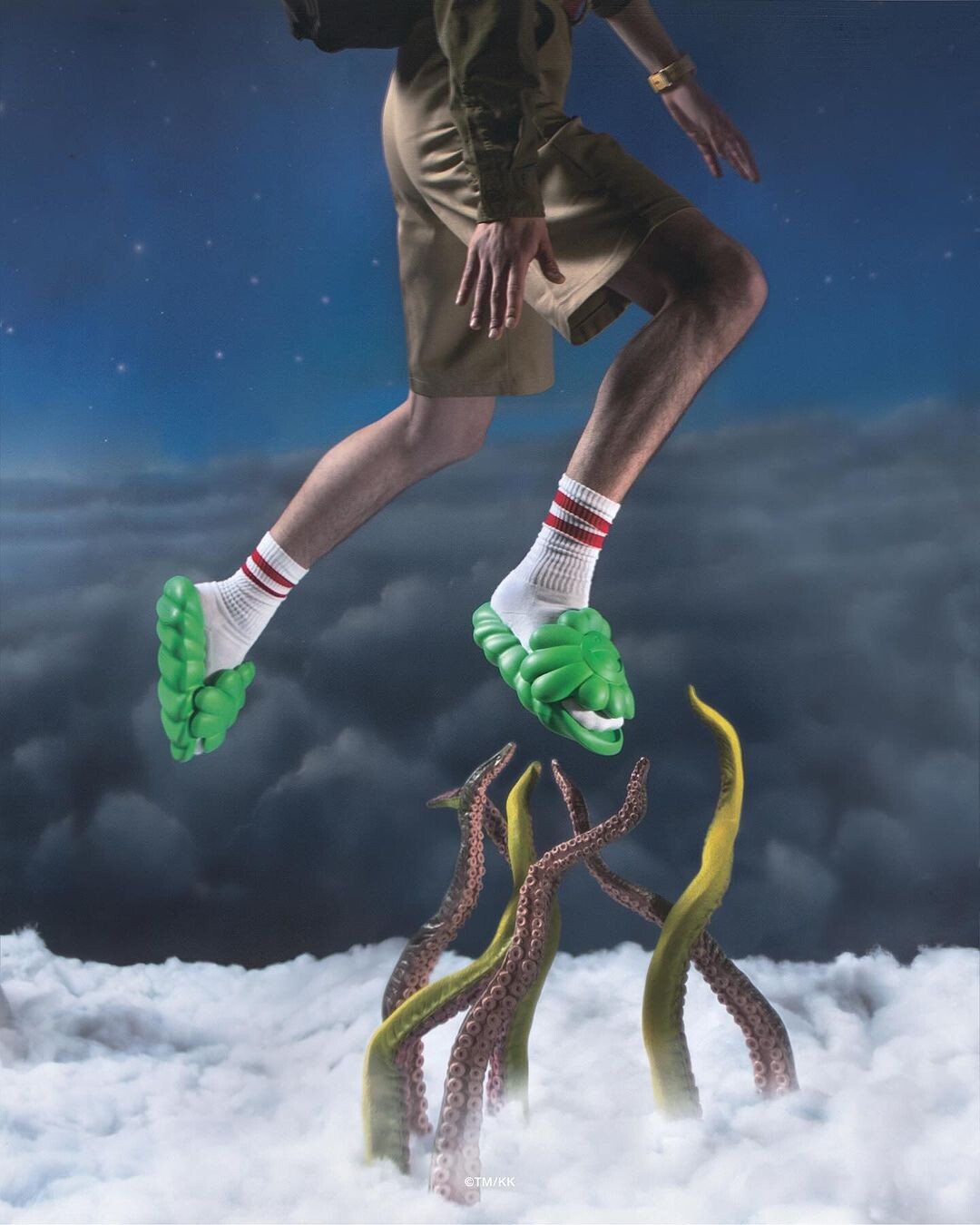 Такаши Мураками, синоним слияния современного искусства и уличной культуры, оставил неизгладимый след в моде благодаря своим ярким и новаторским коллаборациям. Искусство Мураками, в котором традиционная японская живопись сочетается с философией суперфлэта, украшает все - от стен галерей до модных вещей, создавая уникальный мост между искусством и уличной одеждой. В апреле этого года художник выходит на новую территорию, выпуская Ohana Full-Bloom Slides, что знаменует его первый шаг в создании обуви под его непосредственным творческим видением.