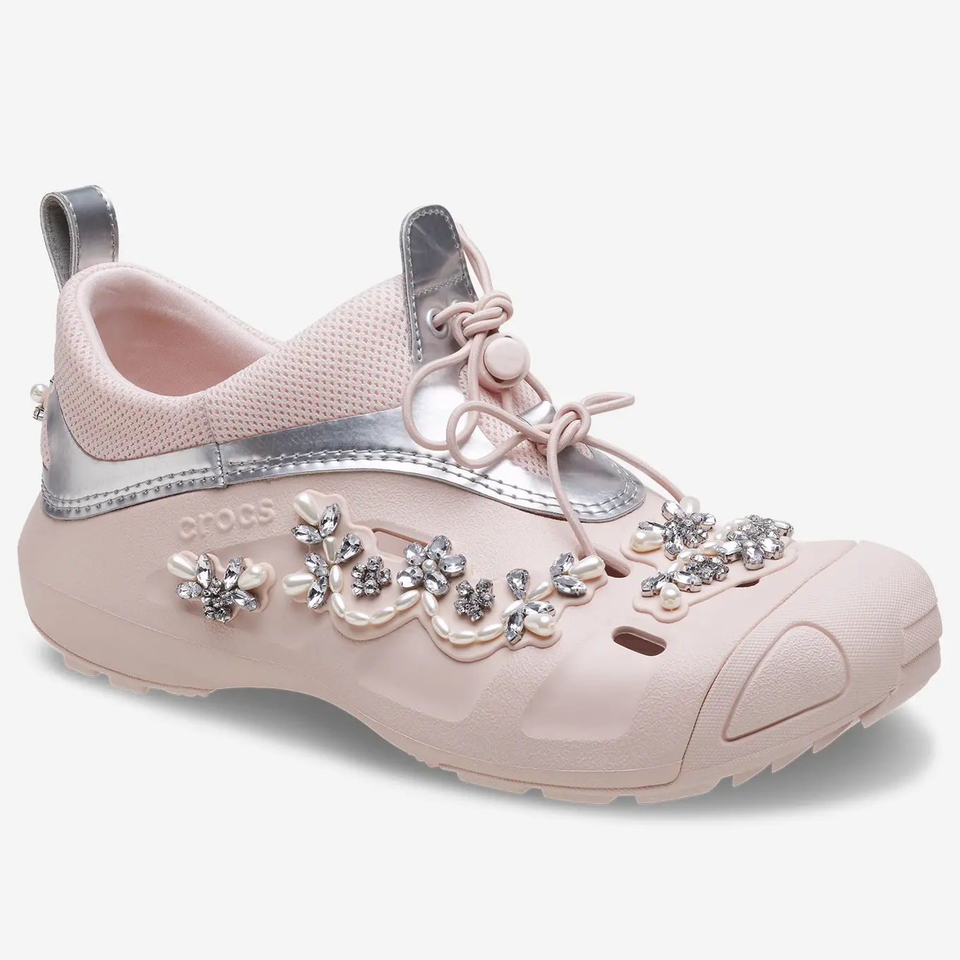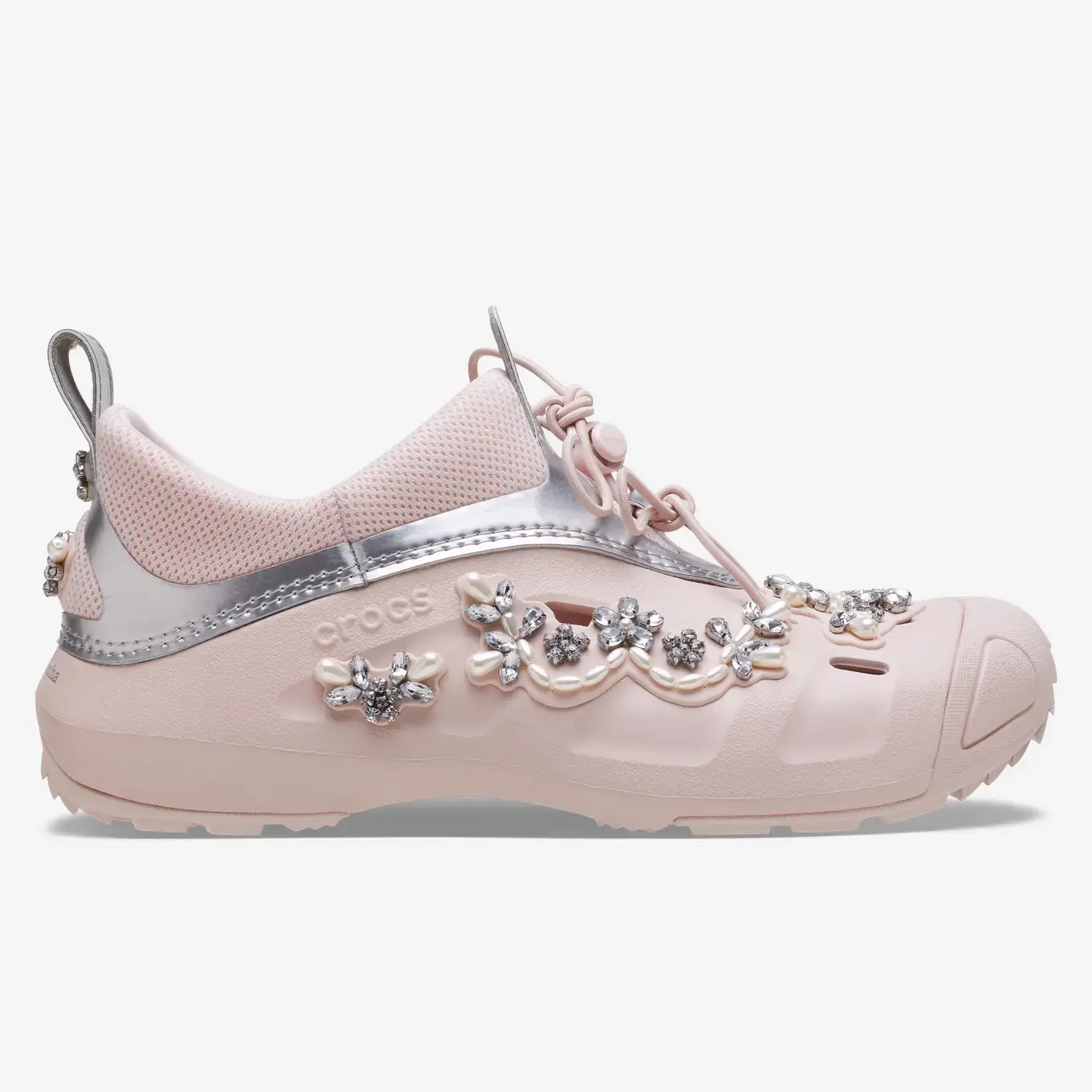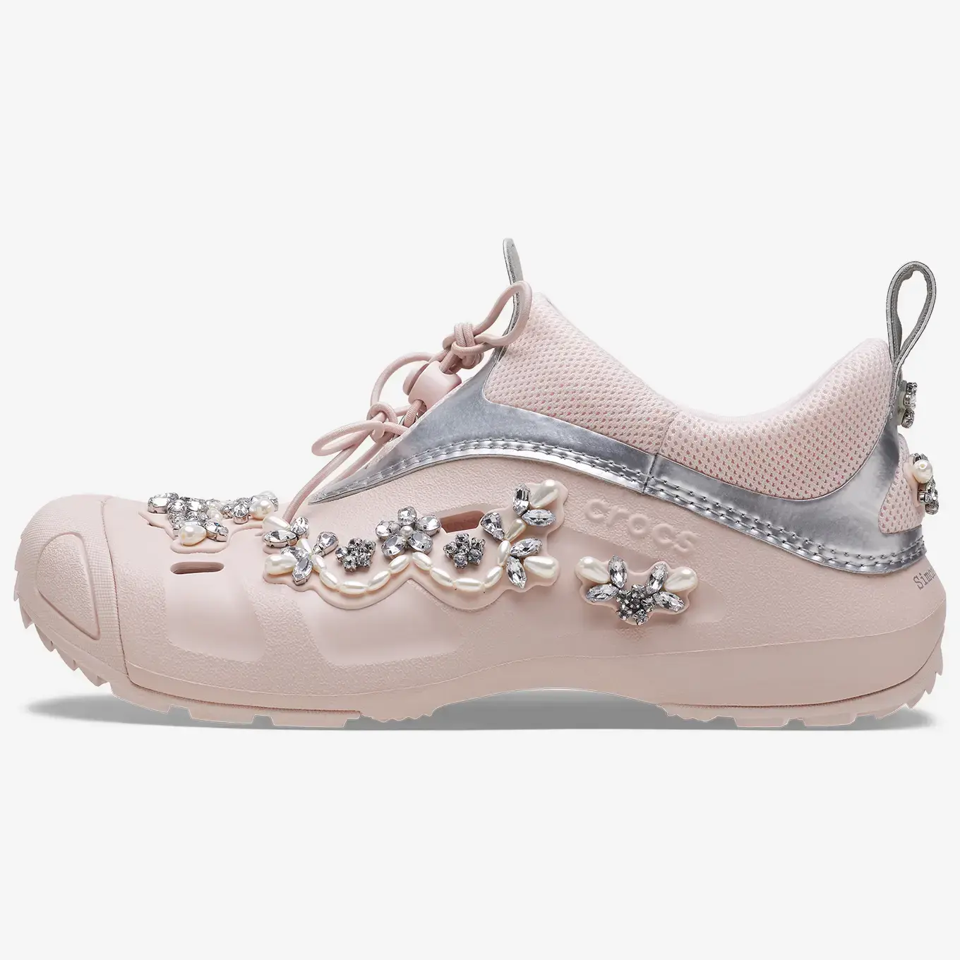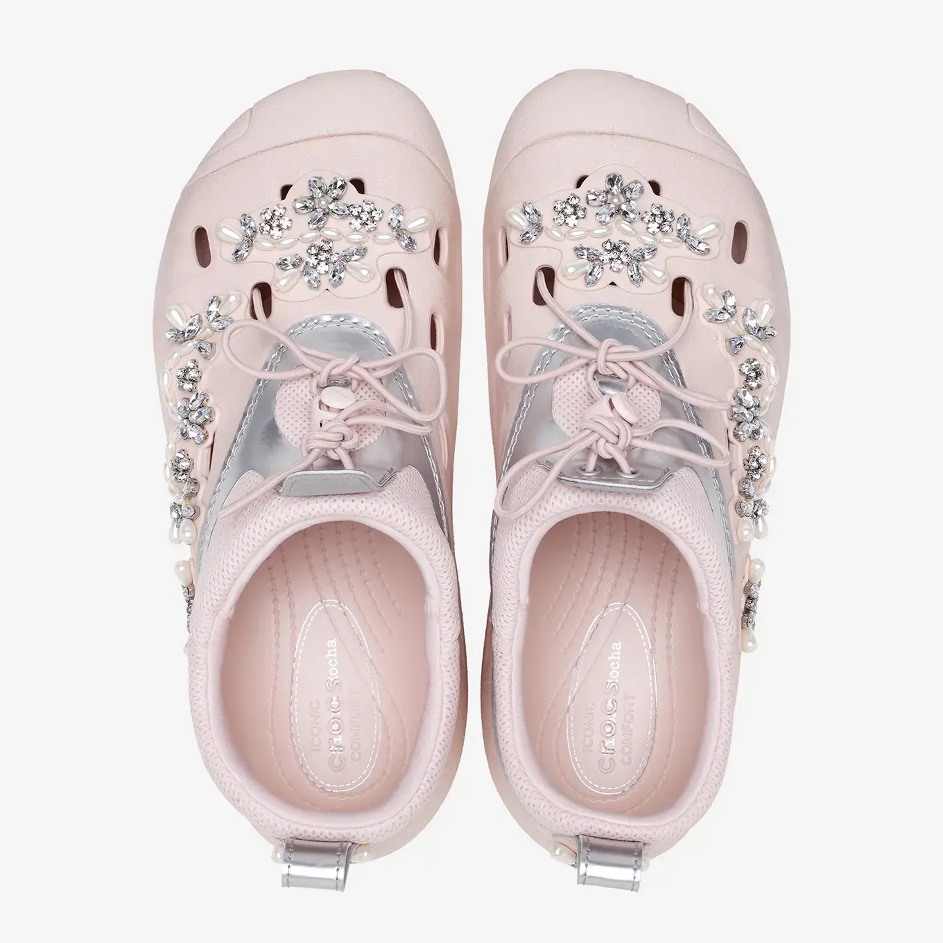 В коллекцию вошли три силуэта - Classic Clog, Siren и Quicktrail. Classic Clog стал фирменной отправной точкой коллаборации, исследуя идею украшения Crocs, что подтолкнуло стиль к драгоценному месту в контрасте с его практичной природой. Siren - это новая форма, объединяющая идеи женственности и практичности. Quick Trail - это аутентичный комфорт Crocs, архивный стиль, который был переиздан и переосмыслен.