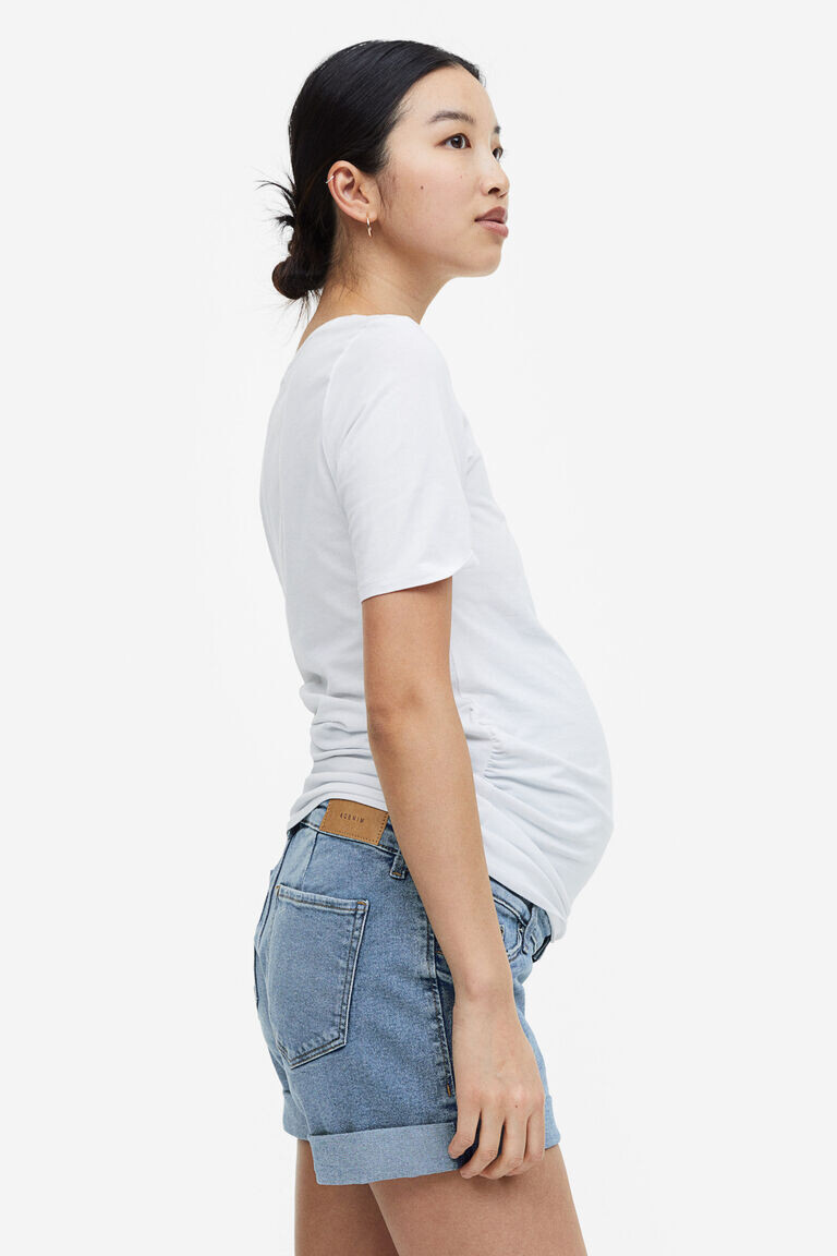 Шорты из эластичного денима с ложной ширинкой, ложными передними карманами, настоящими задними карманами и пришитыми отворотами по краю. Широкая вставка из трикотажа на талии для лучшего прилегания к животу. Описательная длина: Обычная талия. Форма: Стандартная посадка.