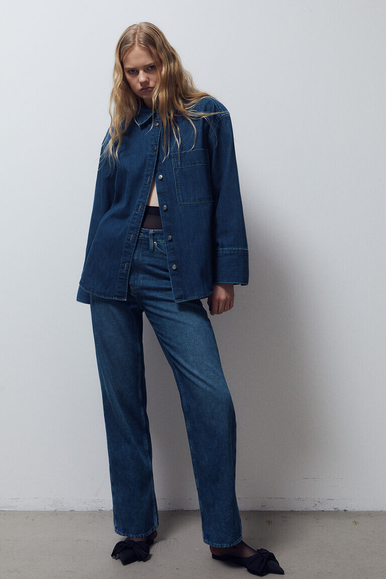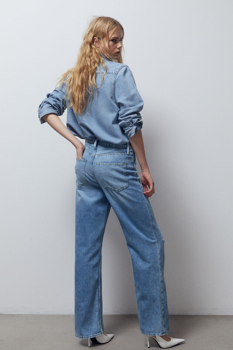 Прямые высокие джинсы H&M, синий