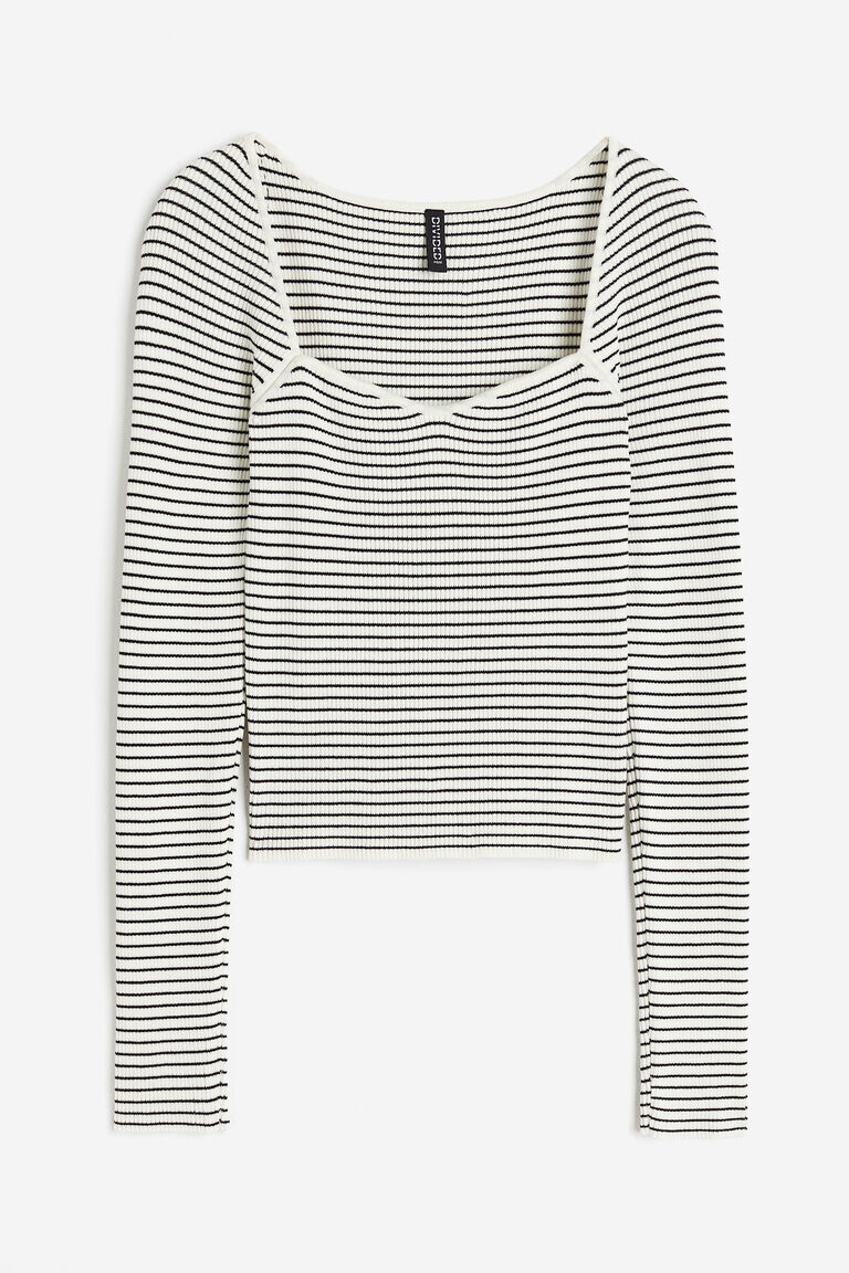 Топ рельефной вязки с вырезом сердечком H&M, белый 3 237₽