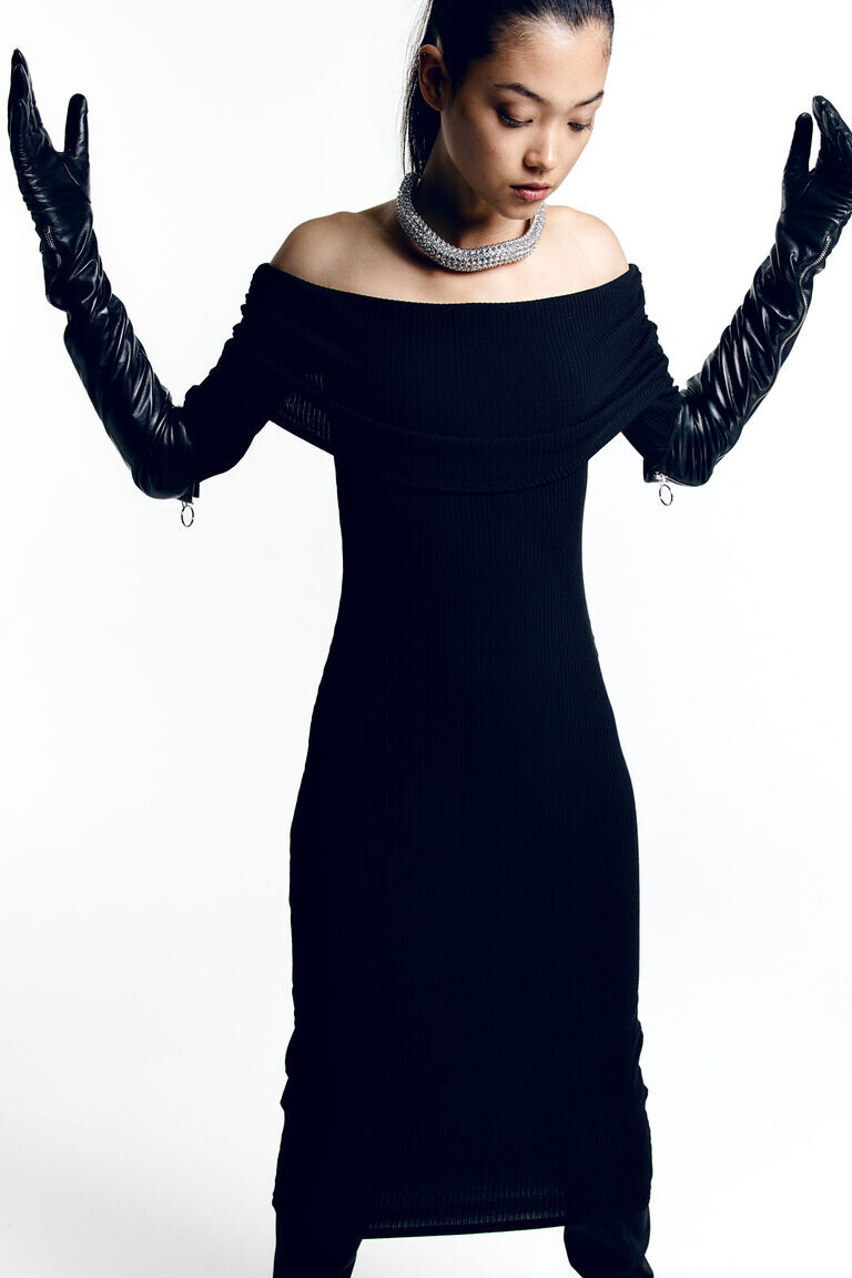 Облегающее платье с открытыми плечами H&M, черный 5 018₽