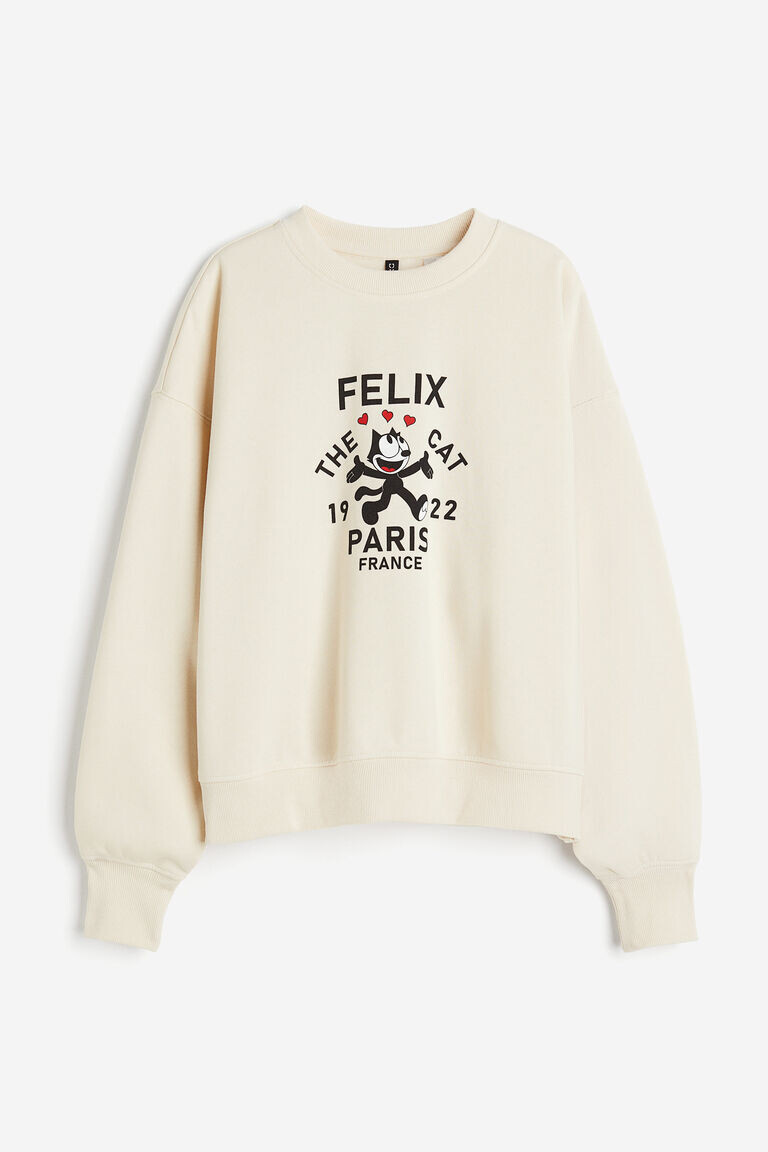 Топ свободного кроя из толстовки с принтом и мягкой начесом внутри. Круглый вырез горловины, отделанный резинкой, длинные рукава, трикотажная резинка на манжетах и по нижнему краю. Стиль: круглый вырез. Посадка: Свободная посадка.