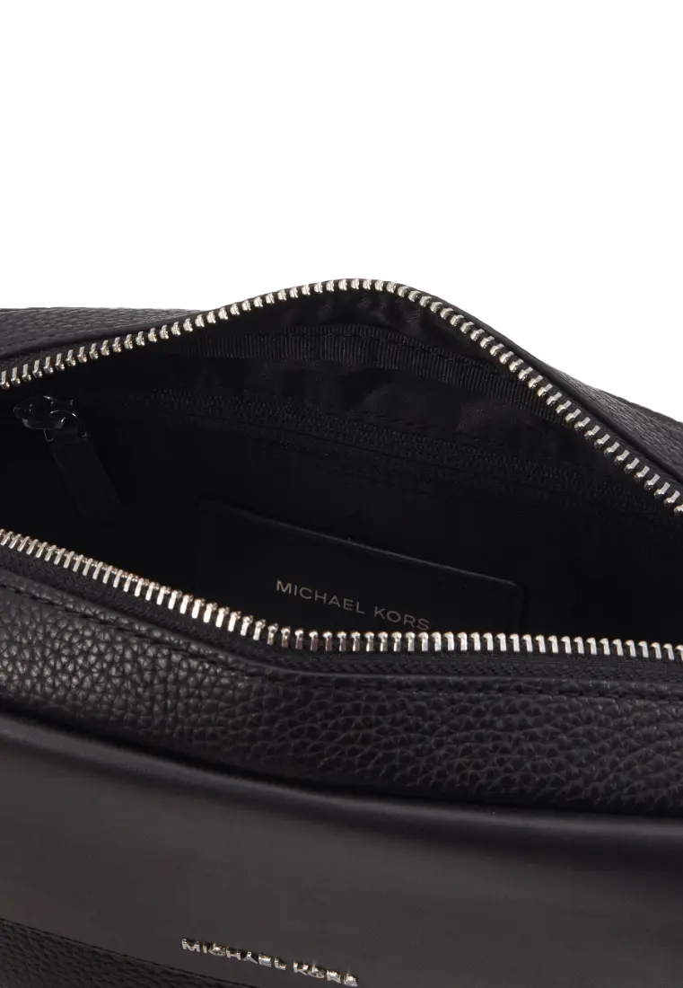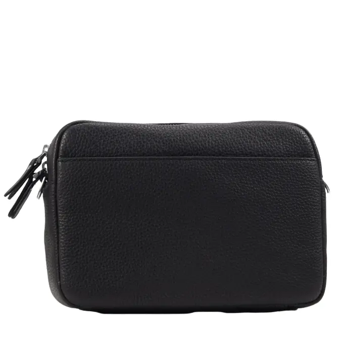 Сумка унисекс из кожи. Особенности: застежка на молнию, 1 отделение, передний внешний карман на магните, задний внешний карман без молнии, внутренний карман на молнии для телефона, регулируемый плечевой ремень, цвет: черный