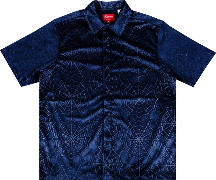 Рубашка Supreme Spider Web Velvet Short-Sleeve Shirt 'Navy', синий