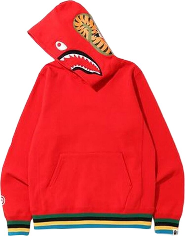Худи BAPE Shark Line Rib Pullover Hoodie 'Red', красный 40 728₽