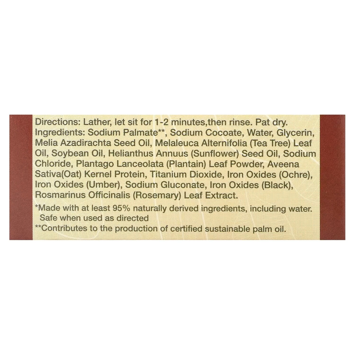 Состав: натриевый пальмитат, натриевая пальмовая кислота, вода, глицерин, масло melaleuca alternifolia (чайное дерево), экстракт листьев мелиа азадирахта, экстракт овса [вода, бутиленгликоль, экстракт янтарной овсяной (овсяной), основной листовой экстракт], хлорид натрия, подорожник Экстракт, тетранатрий ЭДТА, оксиды железа.
