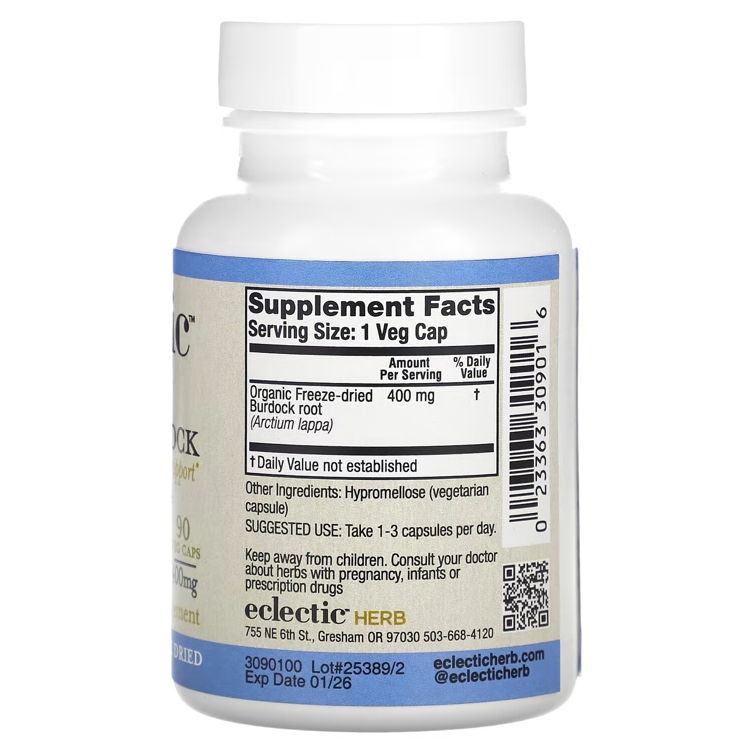 Добавка Eclectic Institute лопух, 90 растительных капсул
