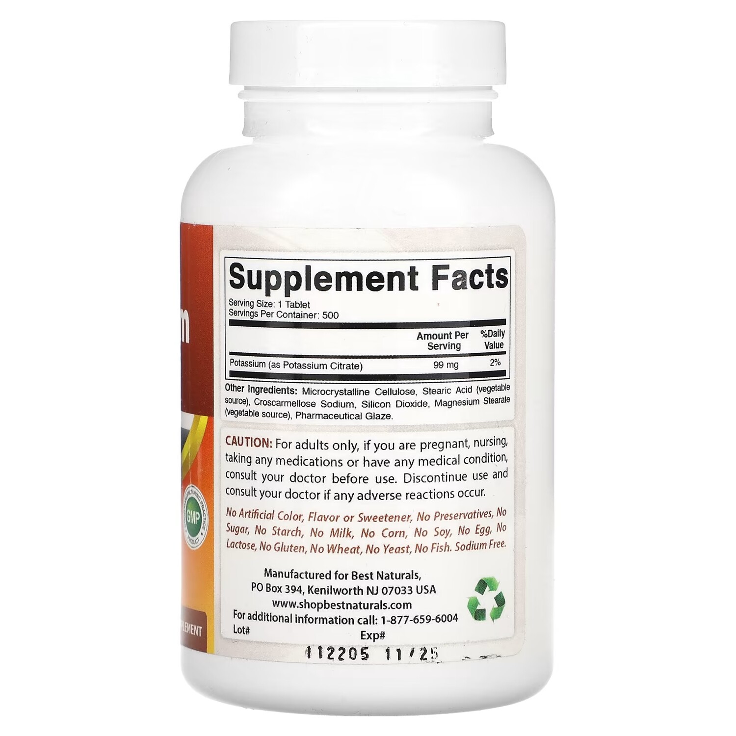 Цитрат калия Best Naturals 99 мг, 500 таблеток