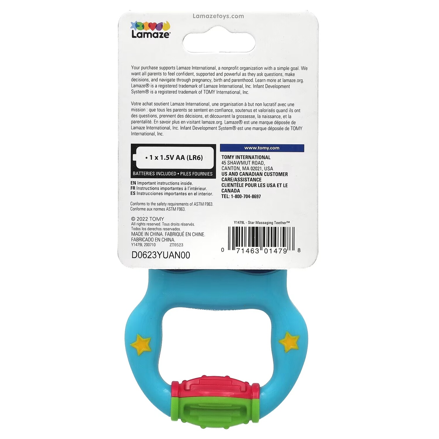 Прорезыватель для зубов в форме звездочки, предлагает безопасную вибрацию для малыша. Имеет удобную ручку, поставляется с батарейкой в комплекте.