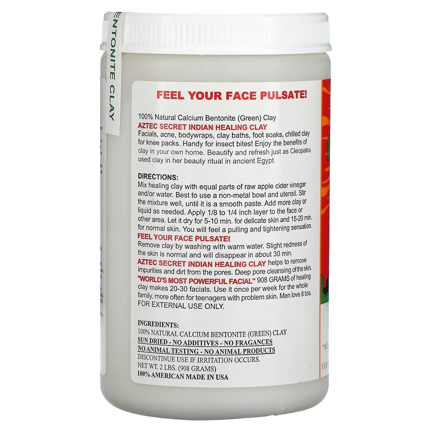 Aztec Secret - продукт для ухода за кожей лица, который содержит природную глину и помогает очищать поры кожи, обладает расслабляющими свойствами и может использоваться для ухода за кожей лица и тела. Этот продукт не тестируется на животных и не содержит ингредиентов животного происхождения.