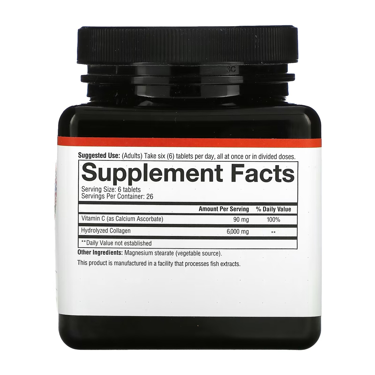 Витамин C (в виде аскорбата кальция) 90 мг, 100%. Гидролизованный коллаген 6000 мг.