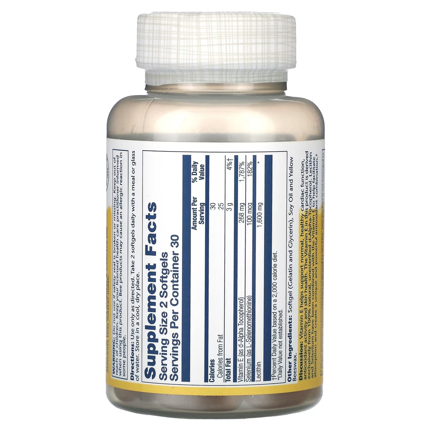 Пищевая добавка, включающая в себя витамин Е, лецитин и селен, поддерживает здоровье сердечно-сосудистой системы, антиоксидантную активность и здоровье кожи.