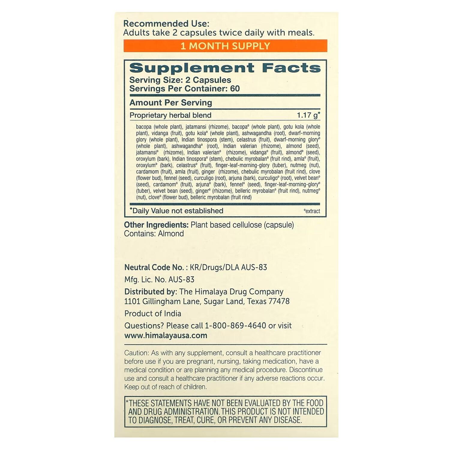 Запатентованная травяная смесь: бакопа (цельное растение), джатаманси (корневище), виданга (плод), готу кола (цельное растение), ашваганда (корень), карликовая ипомея (цельное растение), Индийская тиноспора (стебель), селаструс (плод), индийская валериана (корневище), миндаль (семена), миндаль (семена), ороксил (кора), индийская тиноспора (стебель), чебуличный миробалан (кожура плода), амла (плод), ороксил (кора), целаструс (плод), пальчиковый лист слава (клубень), мускатный орех (орех), кардамон (плоды), гвоздика (бутон цветка), фенхель (семена), куркулиго (корень), арджуна (кора), бархатная фасоль (семена), имбирь (корневище), беллерический миробалан (кожура плода), мускатный орех (орех), 1,17 г.