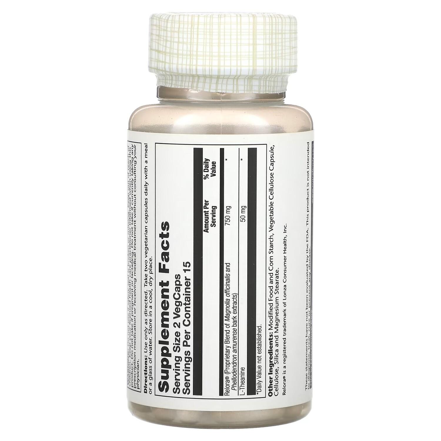 Relora (магнолии лекарственной иЭкстракты коры Phellodendron amurense) 750 мг. L-теанин 50 мг.