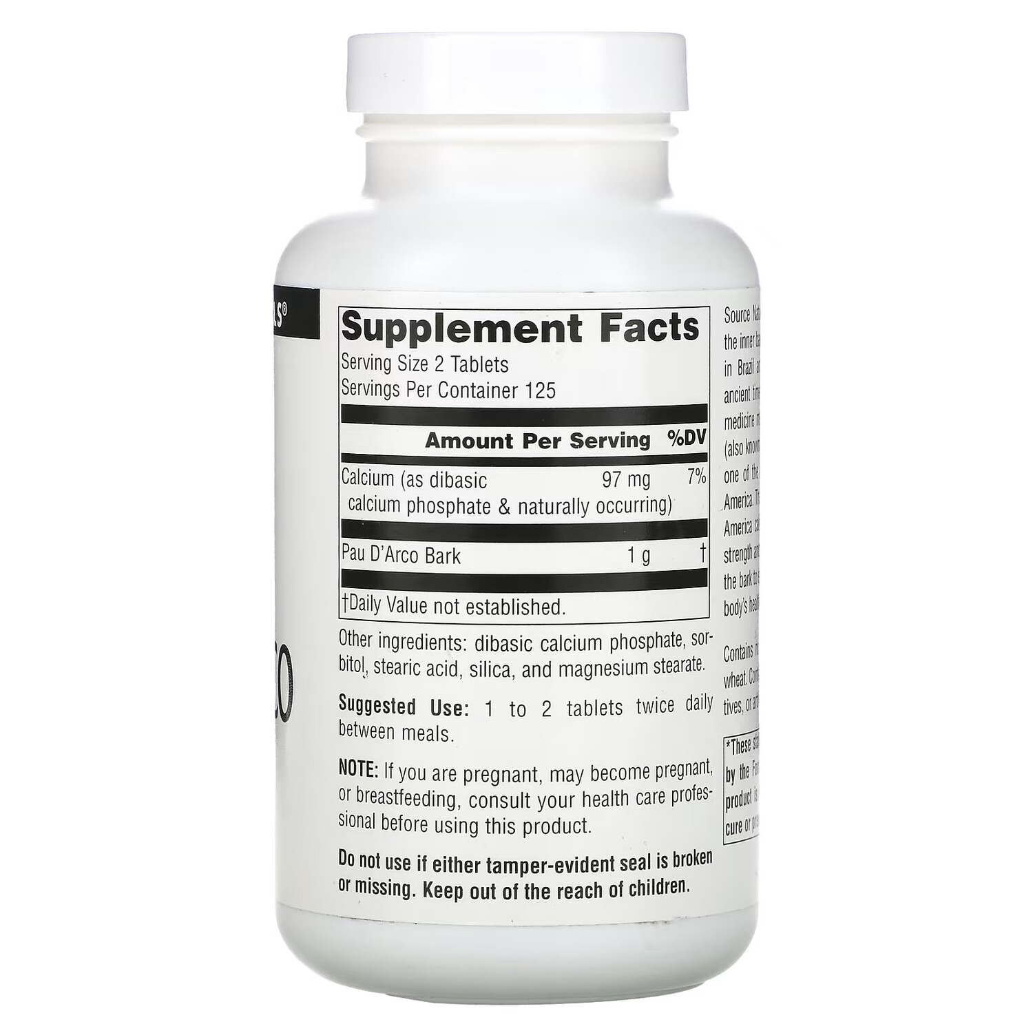 Добавка Source Naturals Pau D'Arco 500 мг, 250 таблеток (250 мг на таблетку) 2 329₽