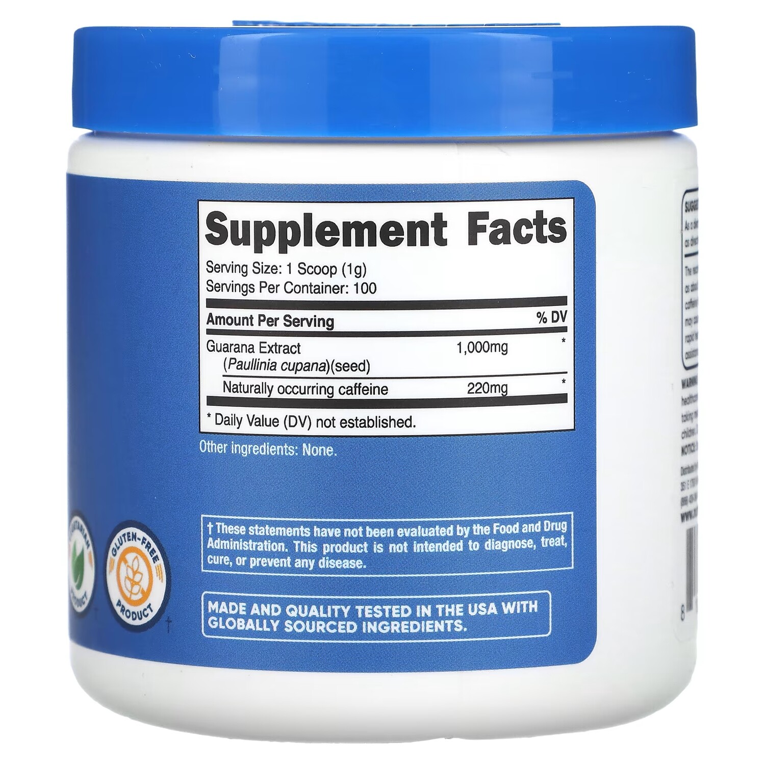 Порошок гуараны Nutricost, 100 г