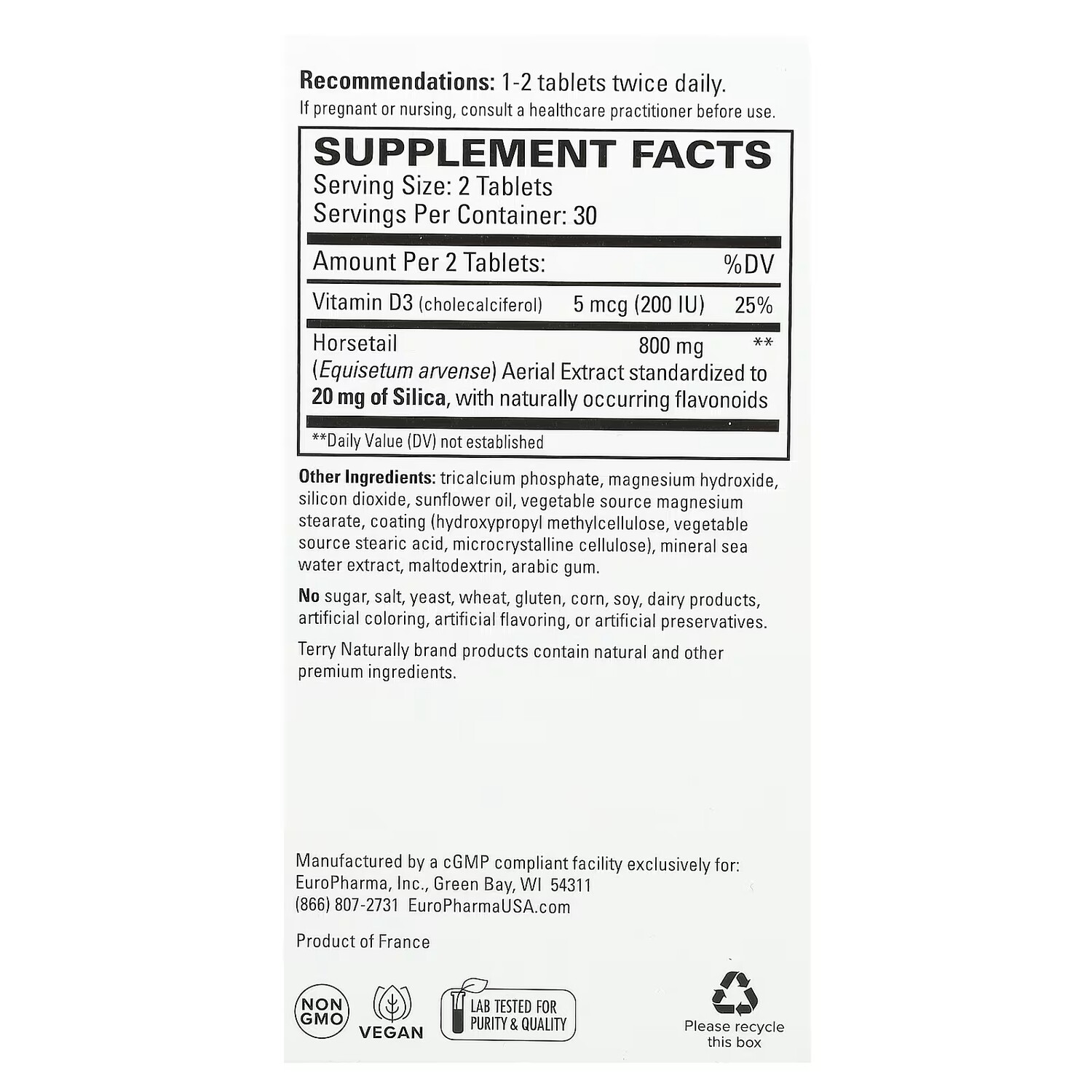 Добавка Terry Naturally Silica-20, 60 таблеток