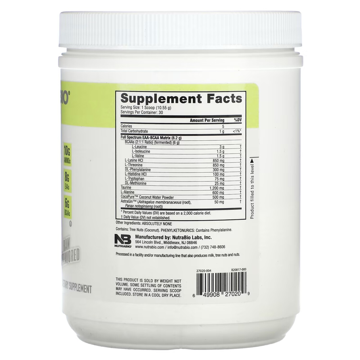 Добавка NutraBio EAA, 317 г