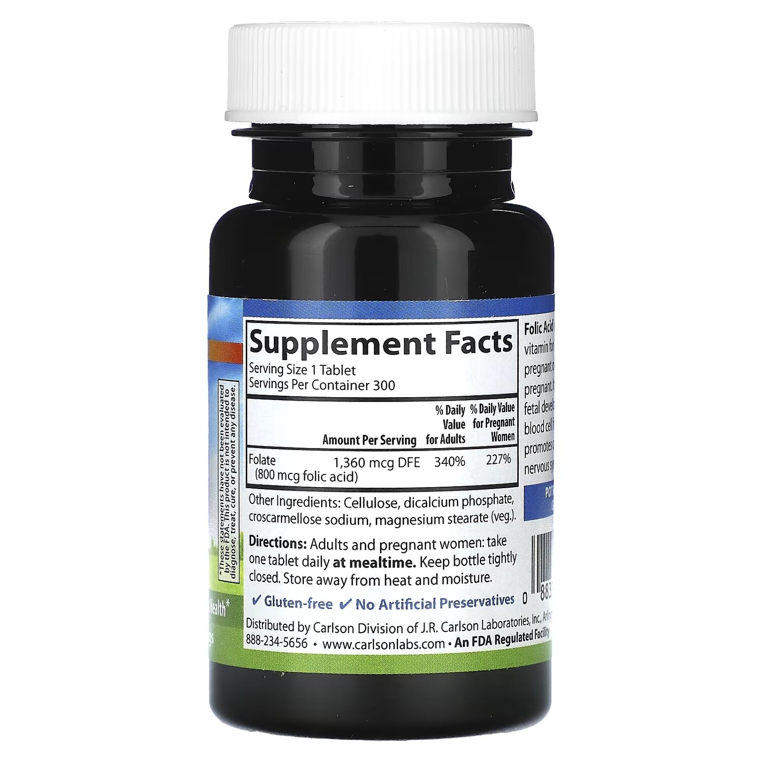Фолиевая кислота Carlson 800 мкг, 300 вегетарианских таблеток