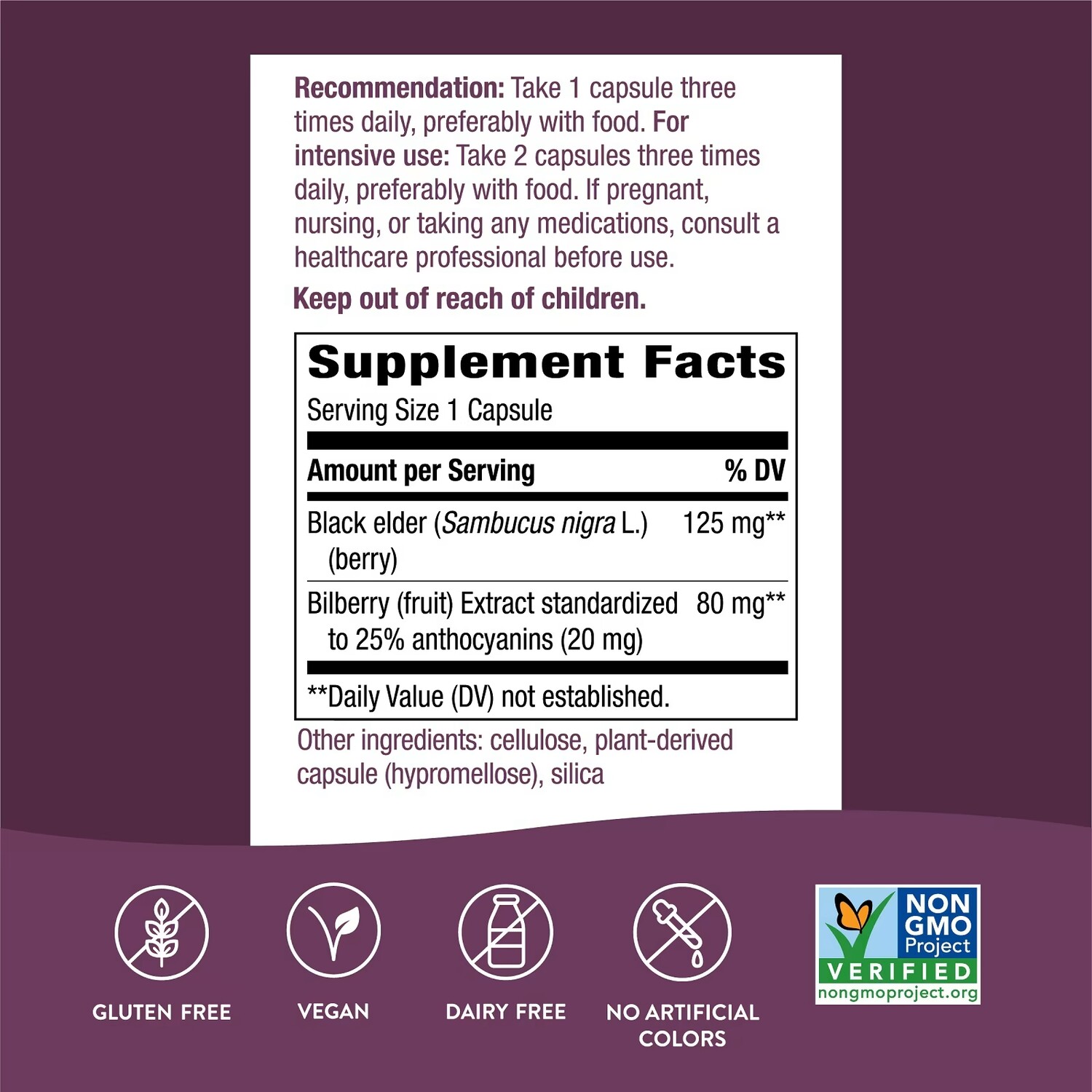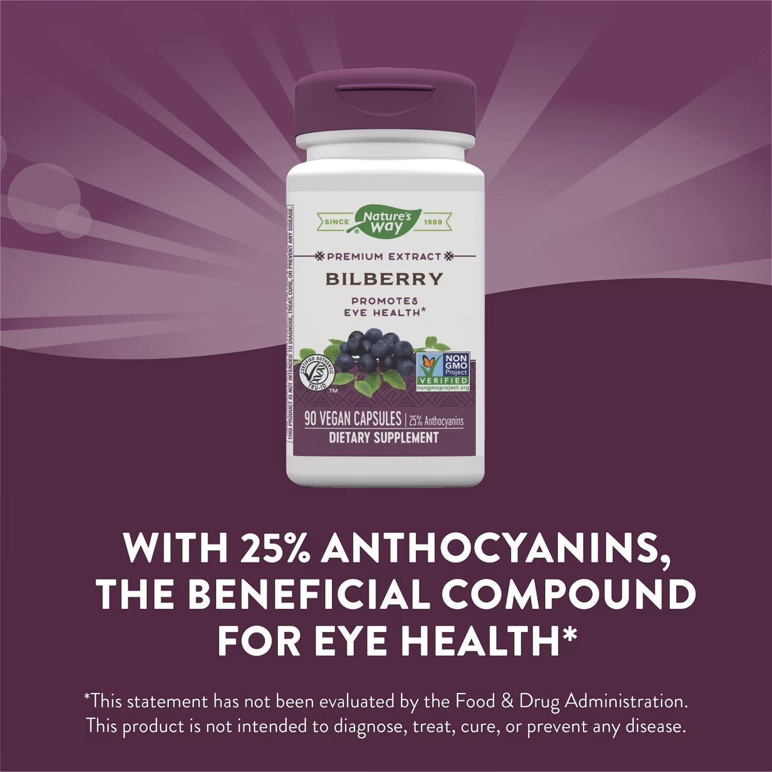 Не является лекарственным средством. Nature's Way использует экстракт черники, обеспечивающий 25% антоцианов, компонента черники, который, как было доказано, способствует здоровью глаз.