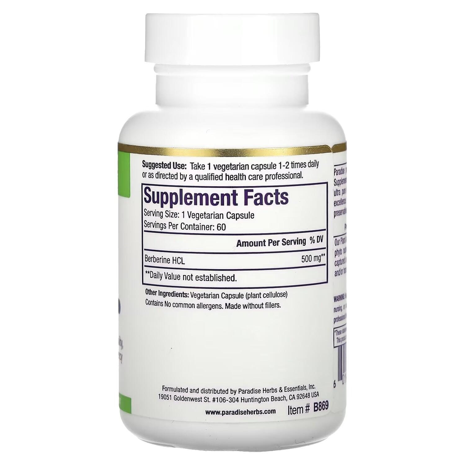 Экстракт берберина Paradise Herbs, 60 вегетарианских капсул