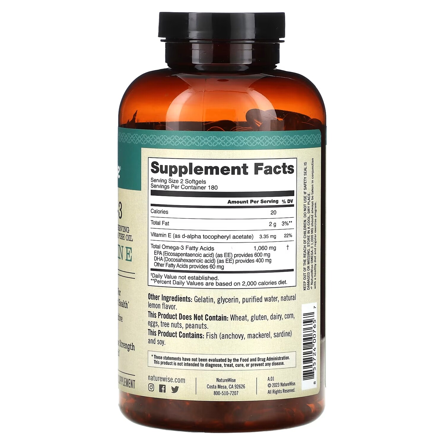 Омега-3 плюс витамин Е NatureWise, 360 мягких таблеток