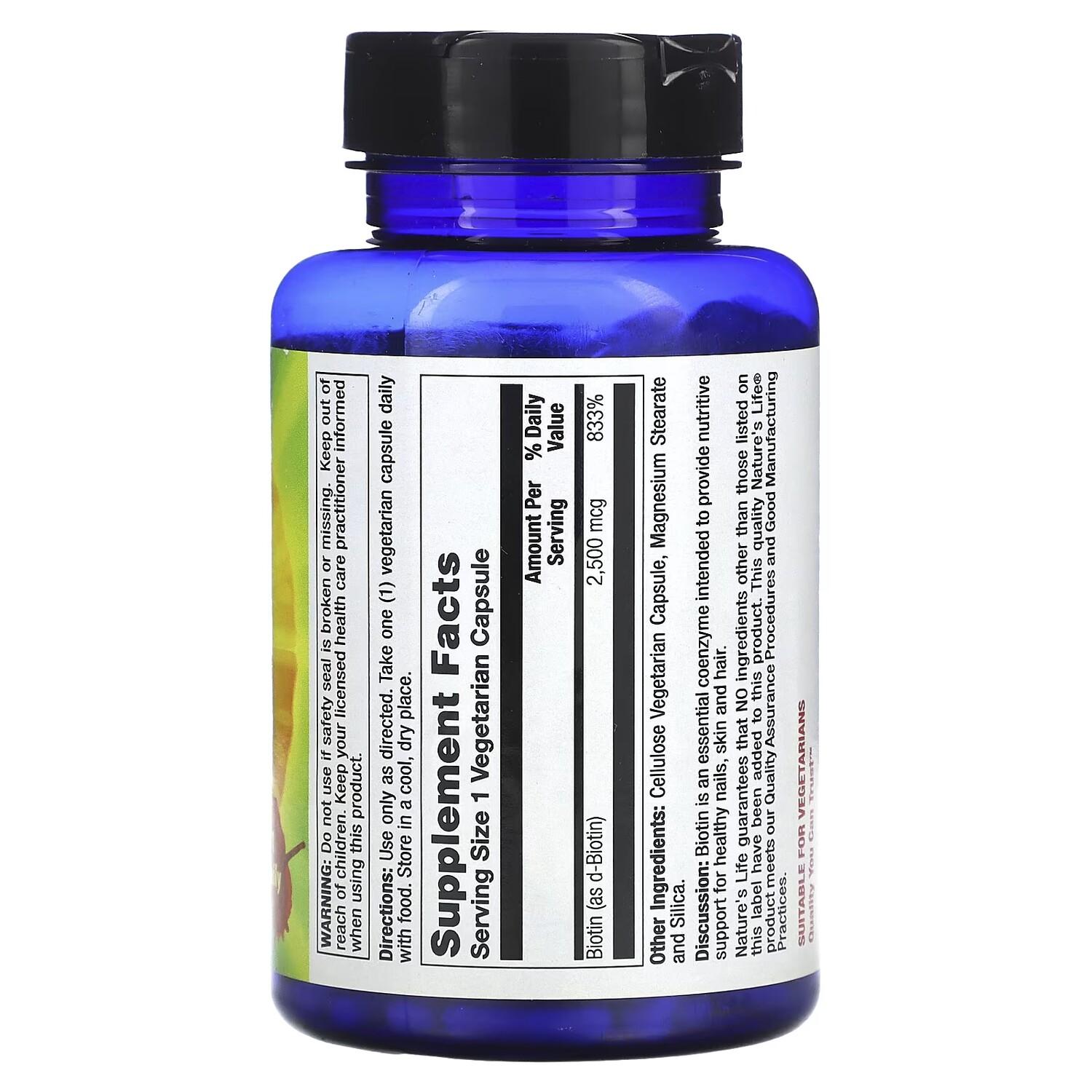 Биотин Nature's Life 2500 мкг, 200 вегетарианских капсул
