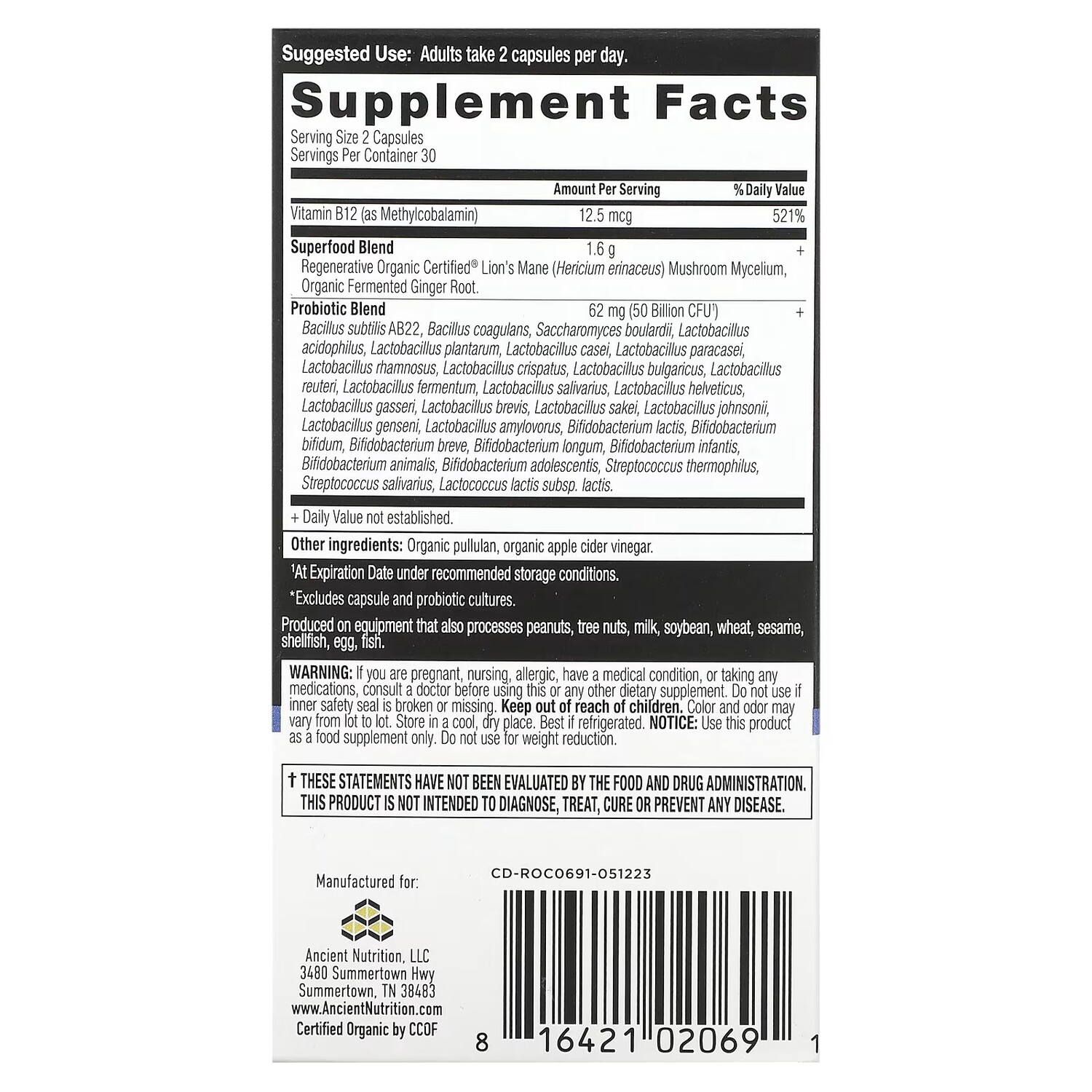 Пробиотики Ancient Nutrition повышенной силы, 60 капсул