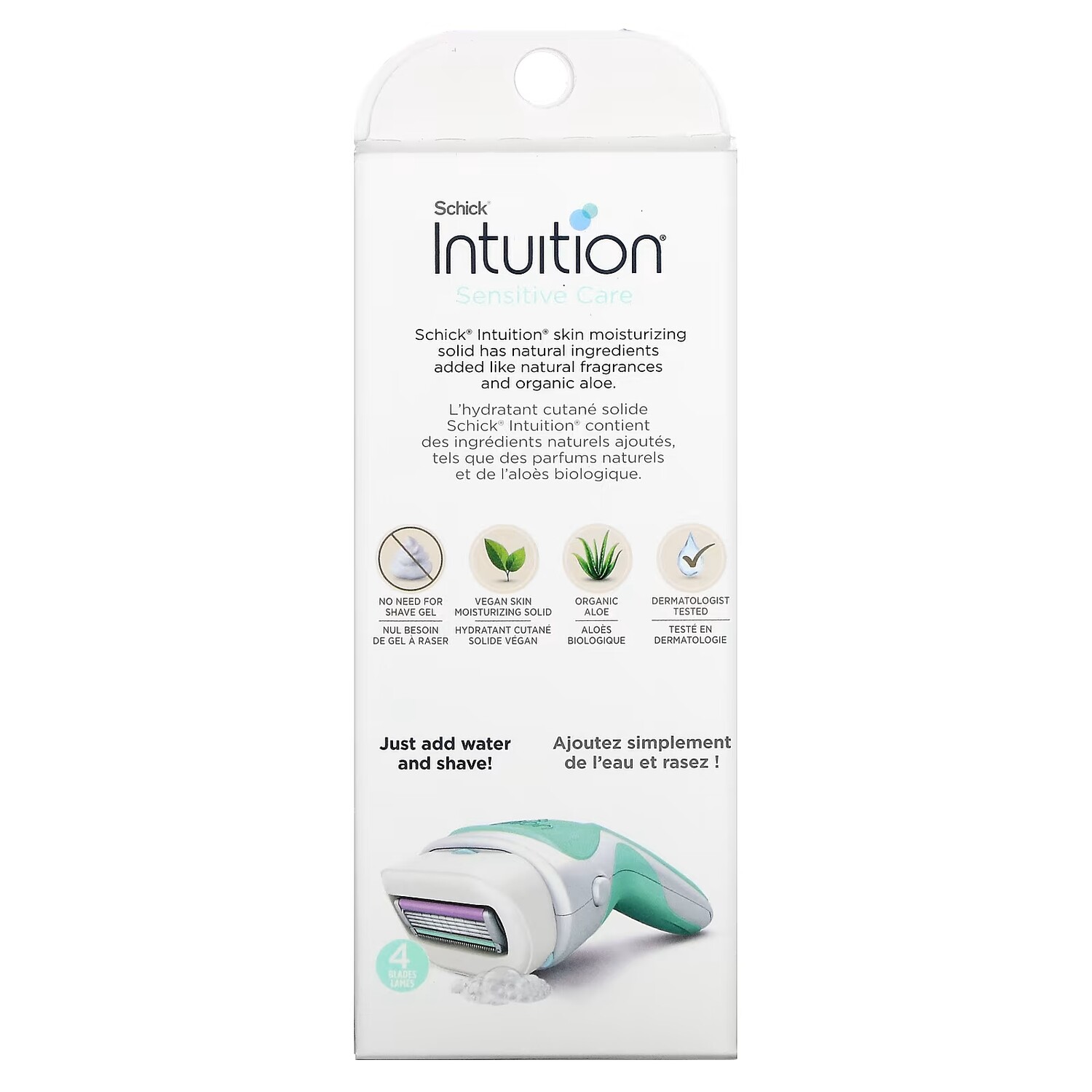 Увлажняющее средство для кожи от Schick Intuition содержит такие натуральные ингредиенты, как натуральные ароматизаторы и органическое алоэ.