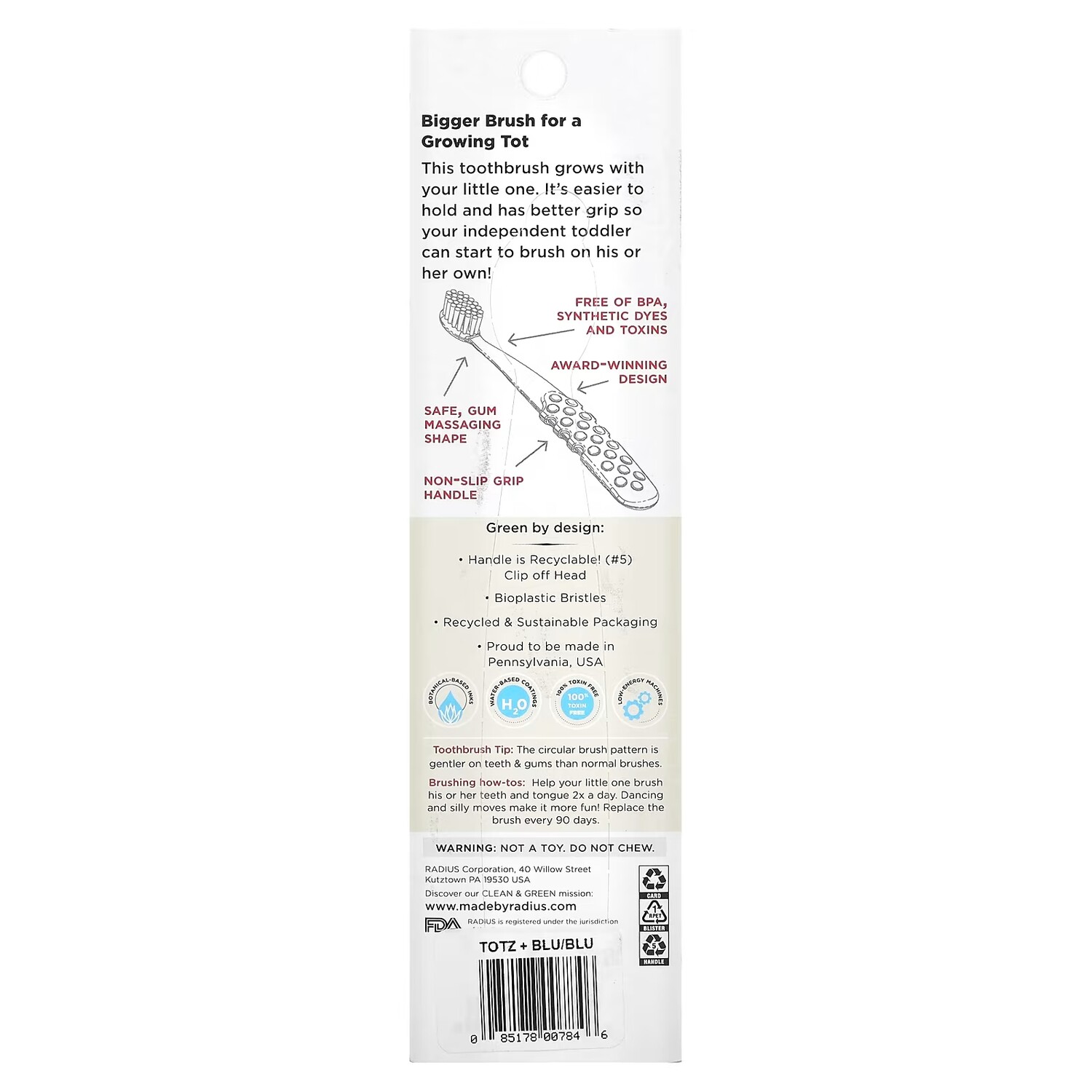 Щетка RADIUS Totz Plus 3 года + зубная щетка Extra Soft Blue 1