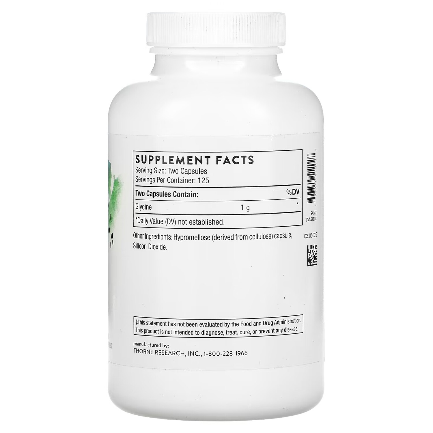 Сведения о добавке Размер порции: две капсулы Количество порций в упаковке: 125 Две капсулы содержат: % от суточной нормы Глицин 1 г * *Суточная норма не установлена.