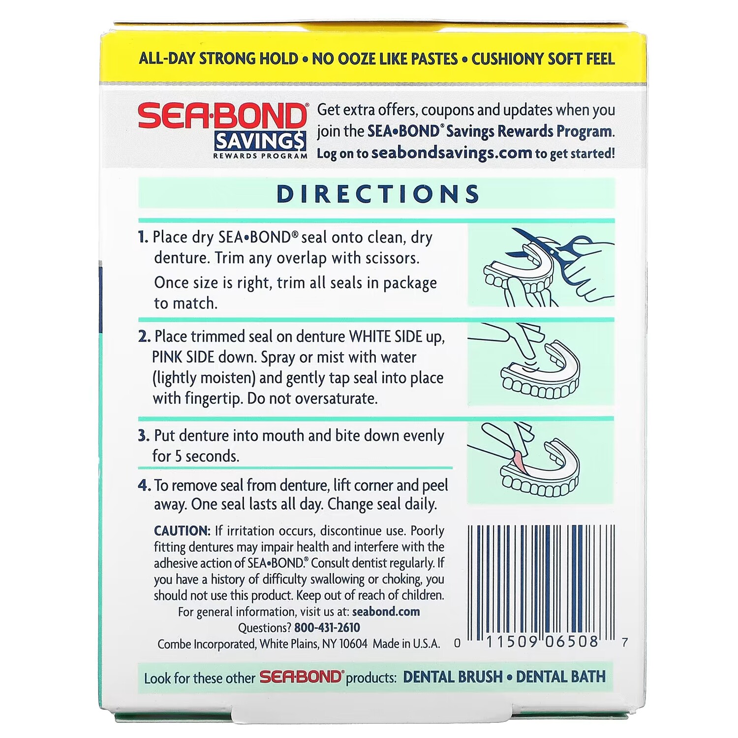 При появлении раздражения прекратите использование. Плохо подогнанные протезы могут нанести вред здоровью и повлиять на адгезионное действие Sea-Bond. Регулярно консультируйтесь со стоматологом. Не используйте этот продукт, если у вас были проблемы с глотанием или удушьем. Хранить в недоступном для детей месте.