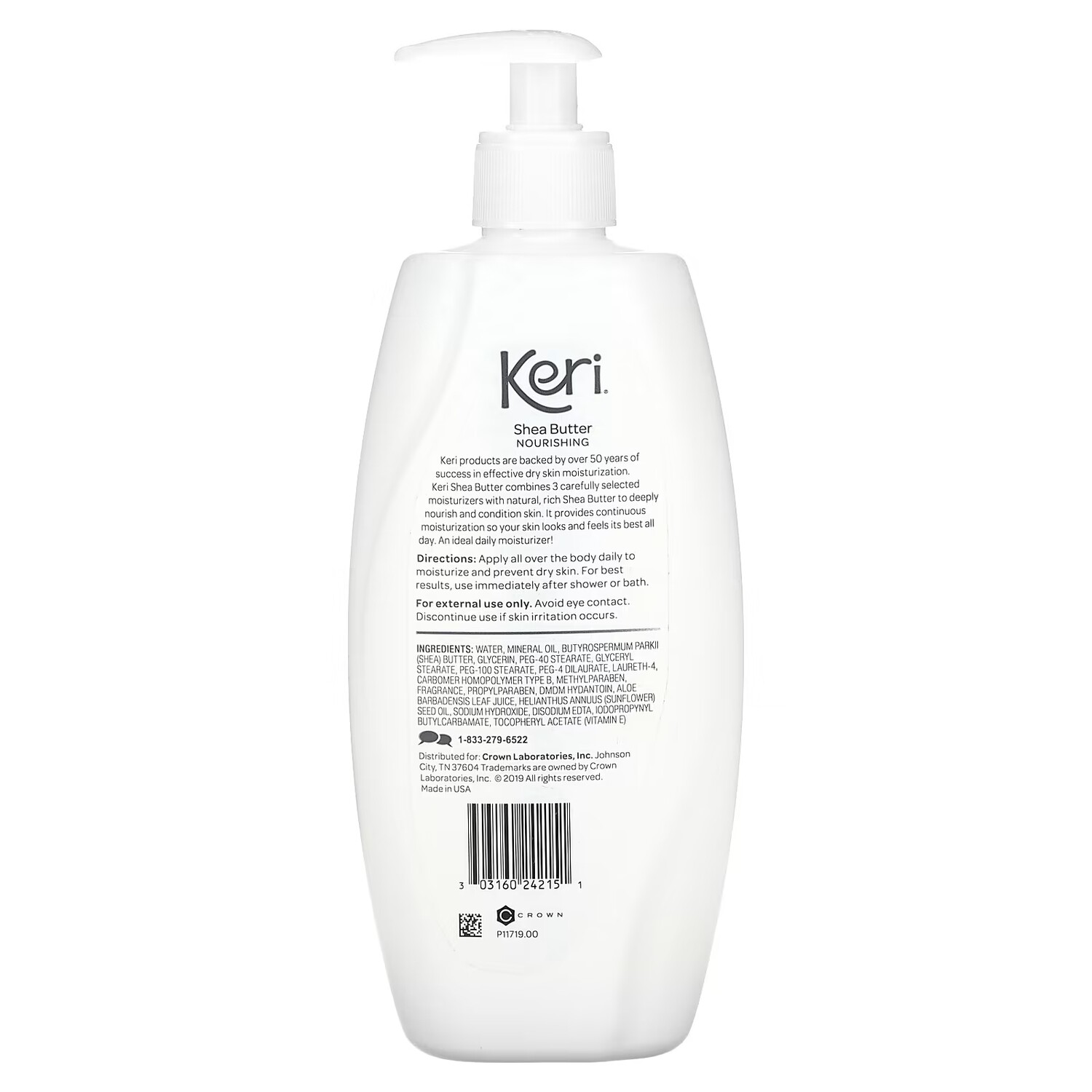 Вода, минеральное масло, масло ши (Butyrospermum parkii), глицерин, ПЭГ-40 стеарат, глицерил стеарат, ПЭГ-100 стеарат, ПЭГ-4 дилаурат, лаурет-4, карбомер гомополимер типа b, метилпарабен, отдушка, пропилпарабен, ДМДМ гидантоин, сок из листьев алоэ вера (Aloe barbadensis), подсолнечное масло (Helianthus annuus), гидроксид натрия, двунатриевая ЭДТК, йодопропинил бутилкарбамат, токоферилацетат (витамин Е).