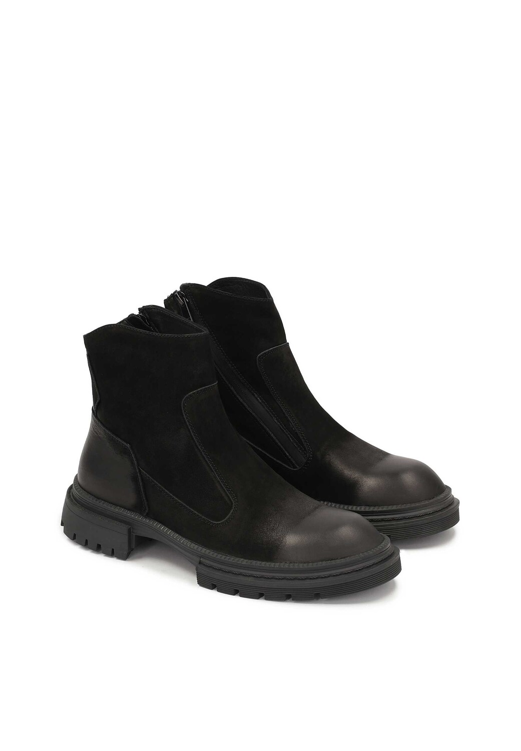 Мужские ботинки на подошве из нубука – практичная модель, идеальная для осенне-зимнего сезона. Внутри штанина имеет молнию, чтобы ее было легче надевать и снимать. Декоративные швы и эффект зерненой кожи подчеркивают оригинальный дизайн. Эти универсальные ботинки подходят ко всему и на разные случаи жизни.