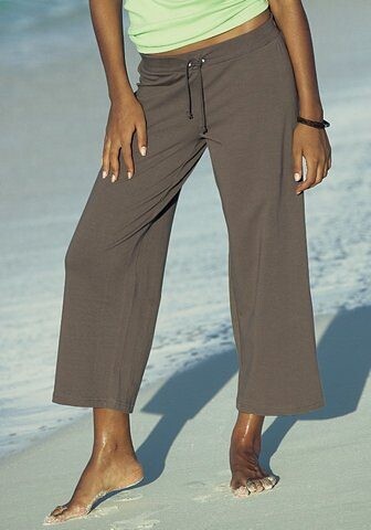 Трикотажные брюки 7/8 от Beachtime. Удобные манжеты на шнурке. Широкая форма ног. Длина без пояса около 80 см. Изготовлен из 95% хлопка (поддерживается Cotton made in Africa), 5% эластана