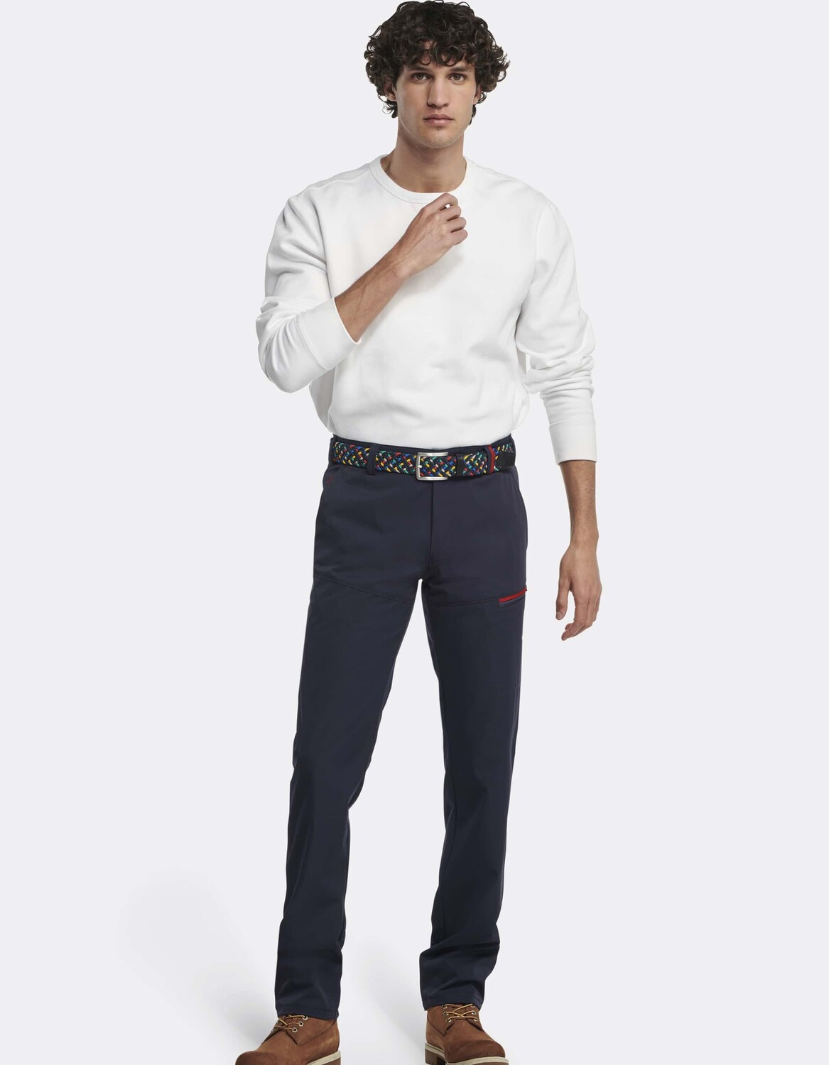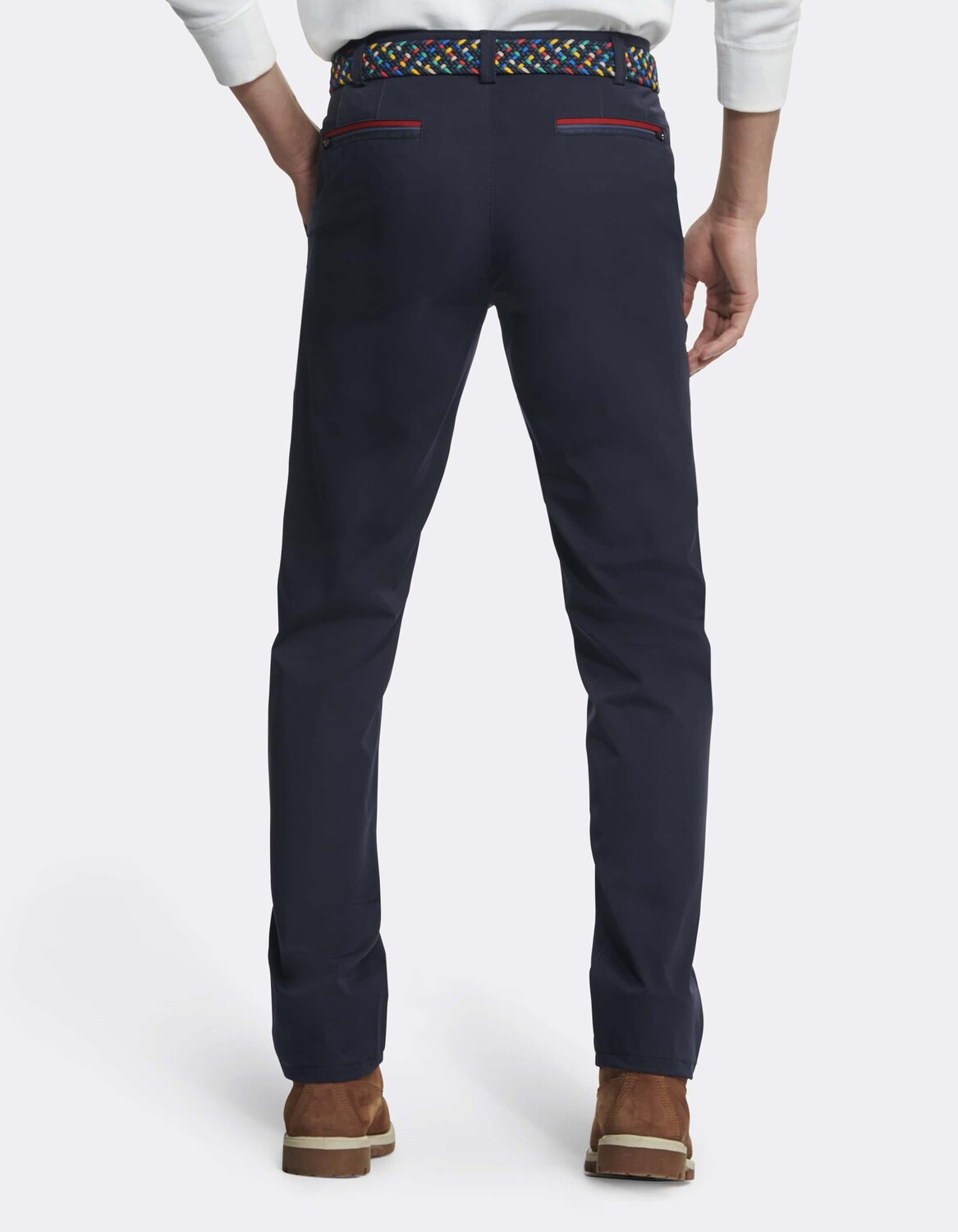 Повседневные брюки-чиносы из линии MEYER Active имеют непринужденный современный крой. На поясе имеется специальный стопор для рубашки, чтобы ничего не соскальзывало во время любых действий. Самые важные вещи найдут свое безопасное место в боковых диагональных карманах, задних карманах на молнии или набедренных карманах, также оснащенных молниями.