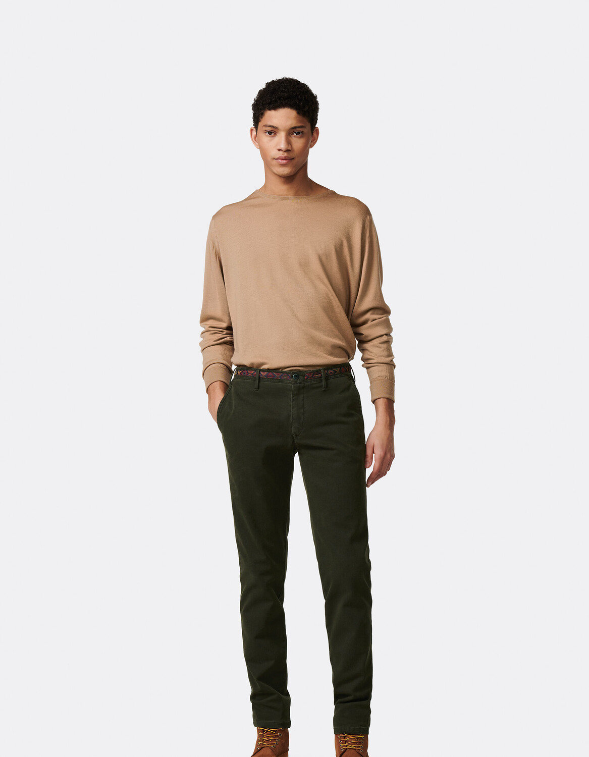 Наша модель Apus с красочной лентой в репсовую ленту на поясе представлена в этом сезоне в самых чудесных осенних цветах. Мягкое качество ткани обеспечивает комфорт, а микроструктура добавляет модный акцент. Узкий крой и круглый пояс гарантируют идеальную посадку. Специальные пуговицы, качественная внутренняя подкладка и карман для мобильного телефона — характерные черты настоящих брюк MMX. 100 % климатически нейтральный, ЧЕСТНЫЙ и ответственный, произведенный на нашем собственном европейском производстве!