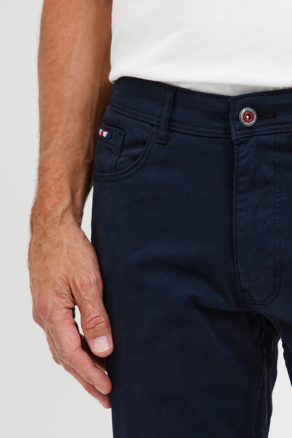 ДЕТАЛИ И ОСОБЕННОСТИ: Тканевые брюки классического дизайна с 5 карманами, застежка на пуговицу и молнию, пояс с петлями для ремня, вышивка логотипа на маленьком кармане для монет и на внутренней стороне пояса, стандартная посадка, приятный мягкий и высококачественный материал с стрейч-контент
