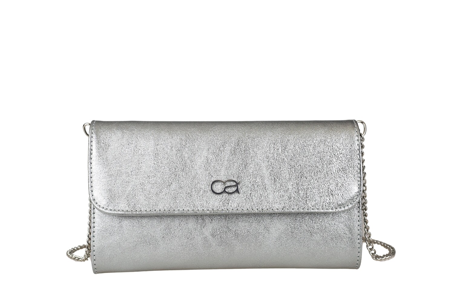 Сумка через плечо и клатч из натуральной кожи из итальянской яловой кожи с металлизированной отделкой. Внутри 3 отделения, два основных и отделение на молнии в качестве перегородки. Со съемной цепочкой для переноски. Единственное сцепление, которое вам нужно. Идеально сочетается с любым праздничным нарядом. Изготовлен из мягкого материала.