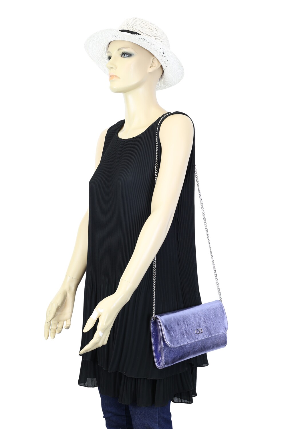 Сумка через плечо и клатч из натуральной кожи из итальянской яловой кожи с металлизированной отделкой. Внутри 3 отделения, два основных и отделение на молнии в качестве перегородки. Со съемной цепочкой для переноски. Единственное сцепление, которое вам нужно. Идеально сочетается с любым праздничным нарядом. Изготовлен из мягкого материала.
