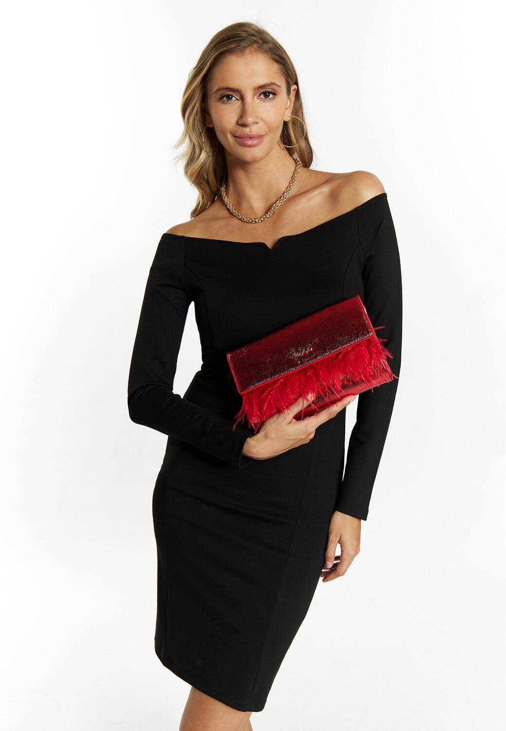 Готовы к большому выступлению? Тогда выберите вечернюю сумку Faina для своего праздничного наряда. Блестящий аксессуар из искусственной кожи украшен тиснением под рептилию и расставляет игривые акценты с помощью перьев. Длинная съемная цепочка из звеньев предлагает множество вариантов ношения, поэтому вы также можете стильно носить эту модель как клатч.
