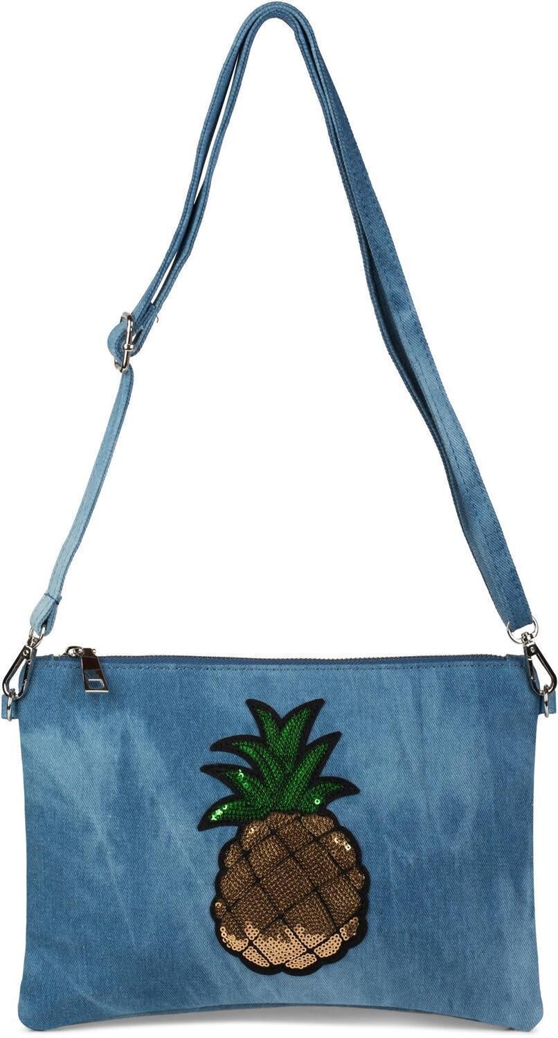 styleBREAKER стильная сумка через плечо, джинсовый клатч стираного вида с аппликацией в виде ананасов из пайеток.