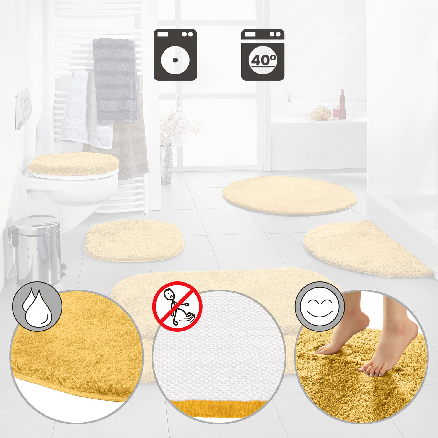 Коврик для ванной Эрвина Мюллера «Кефалония». Высокое качество во многих актуальных цветах. Плотный, чудесно пушистый ворс окутает вас в ванной уютным комфортом. Эта серия ковриков для ванной производится традиционно и на основе многолетнего опыта. В этом процессе ворс вручную вшивается в основной материал с помощью многоигольной швейной машины. Это придает коврикам для ванной особенно изысканный, элегантный вид и индивидуальность. Большое внимание к качеству и уходу проявляется также в особенно широком диапазоне размеров и цветов. Задняя сторона имеет нескользящее латексное покрытие и подходит для полов с подогревом.