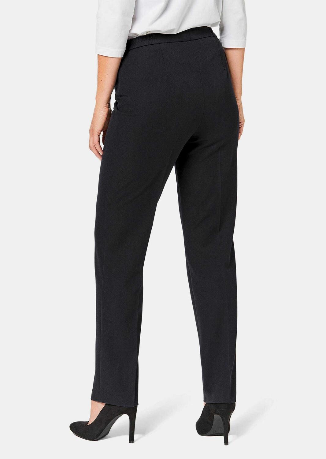 Брюки CARLA с частично эластичным поясом для оптимальной регулировки размера талии. Легкая в уходе и эластичная ткань из вискозы, которая обеспечивает комфорт при каждом движении. С четкими складками и L-образными карманами. Прямая нога. Ширина низа брюк CARLA около 40 см. Рост нашей модели 175 см, размер 38